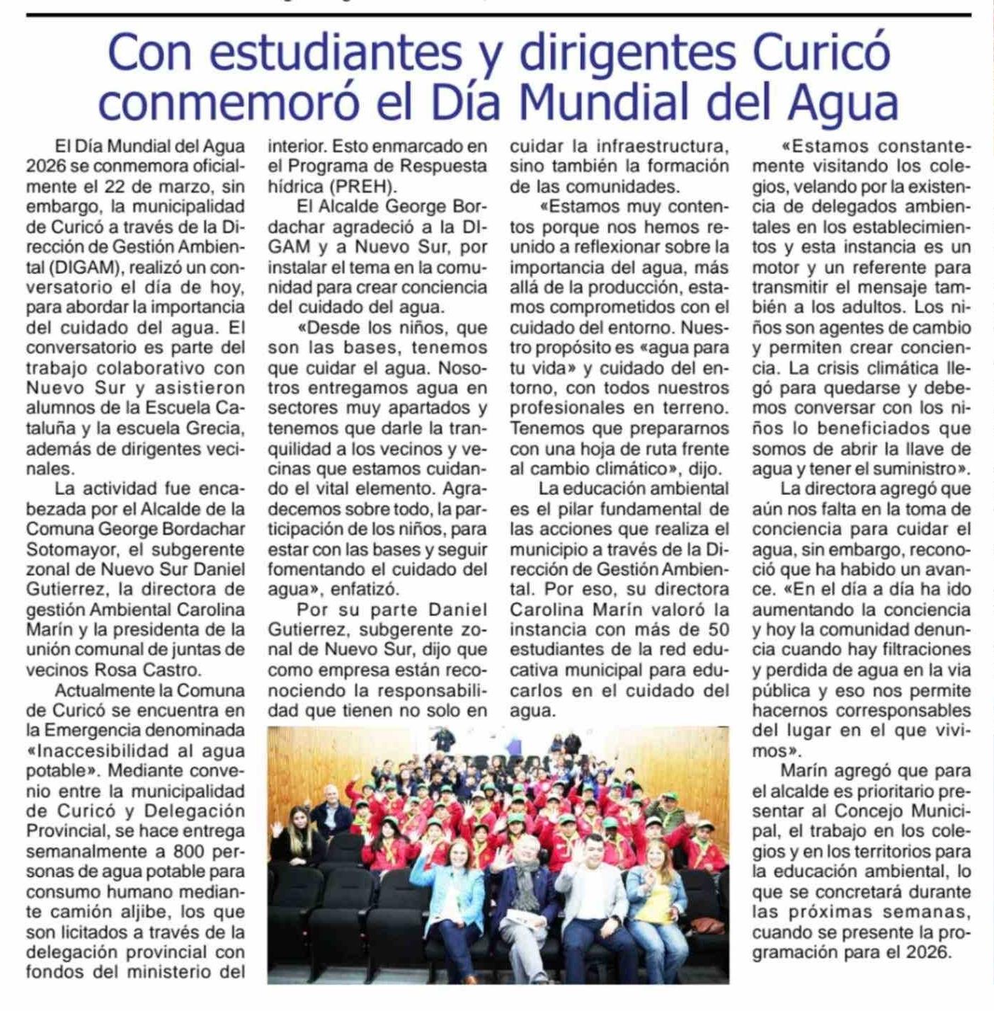Con estudiantes y dirigentes Curicó conmemoró el Día Mundial del Agua