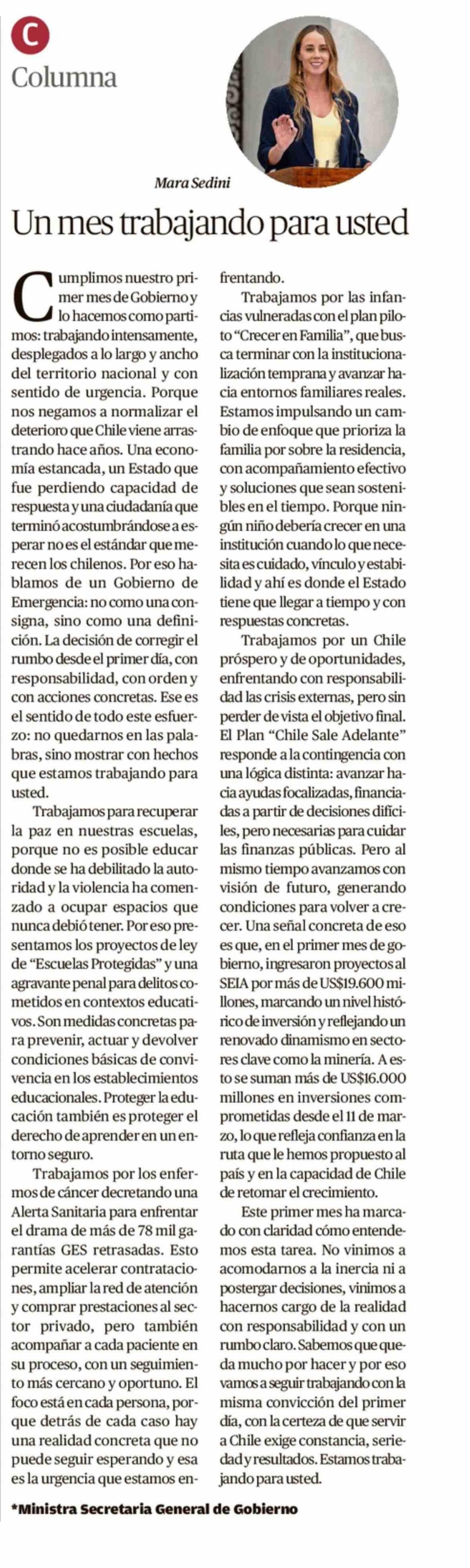 COLUMNAS DE OPINIÓN: Un mes trabajando para usted