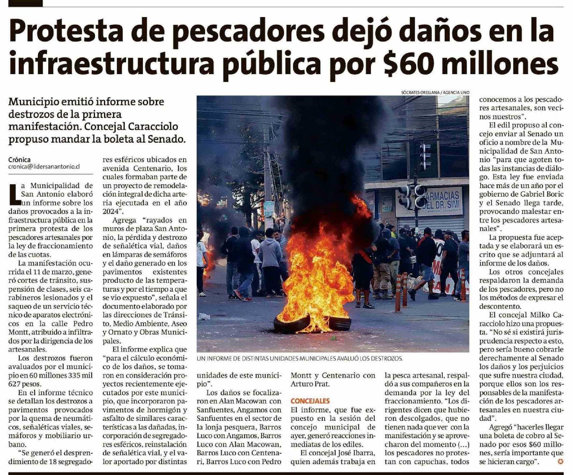 Protesta de pescadores dejó daños en la infraestructura pública por $60 millones