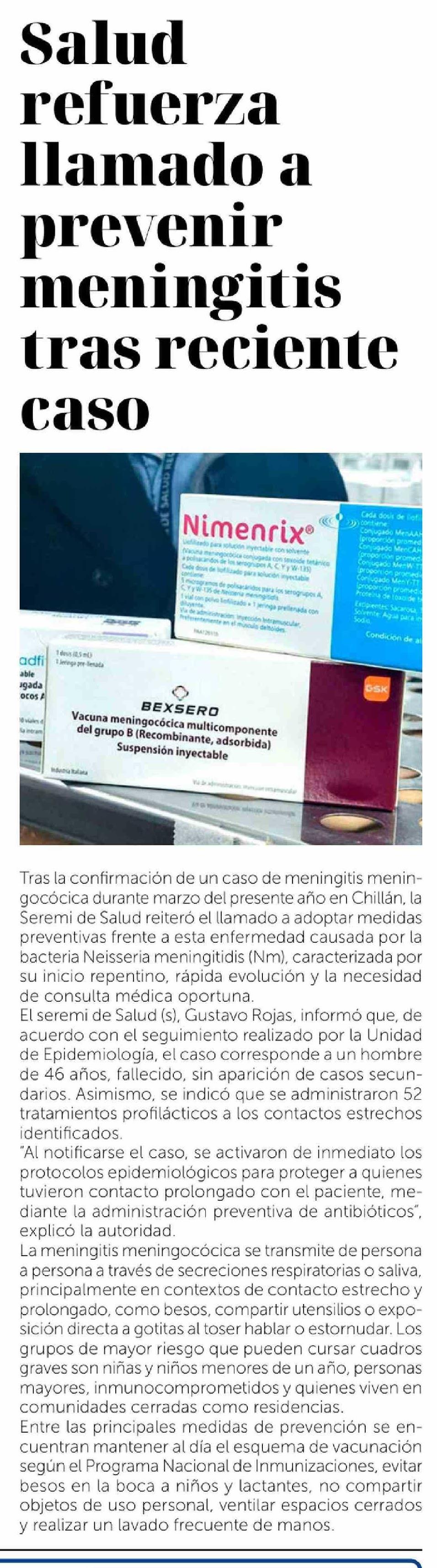 Salud refuerza llamado a prevenir meningitis tras reciente caso