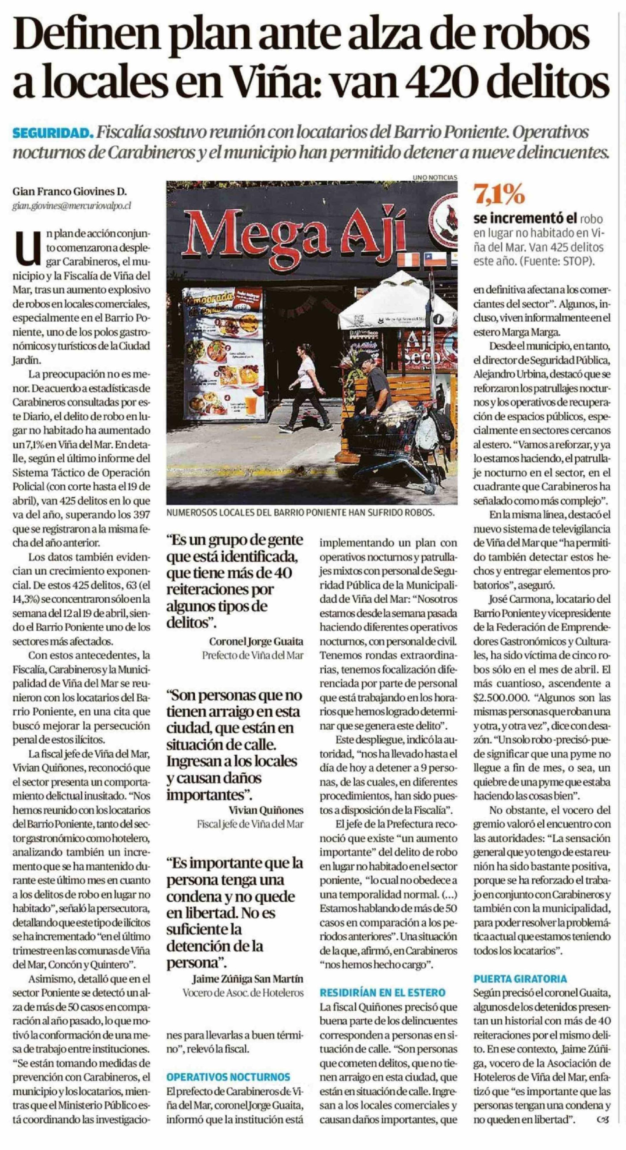 Definen plan ante alza de robos a locales en Viña: van 420 delitos