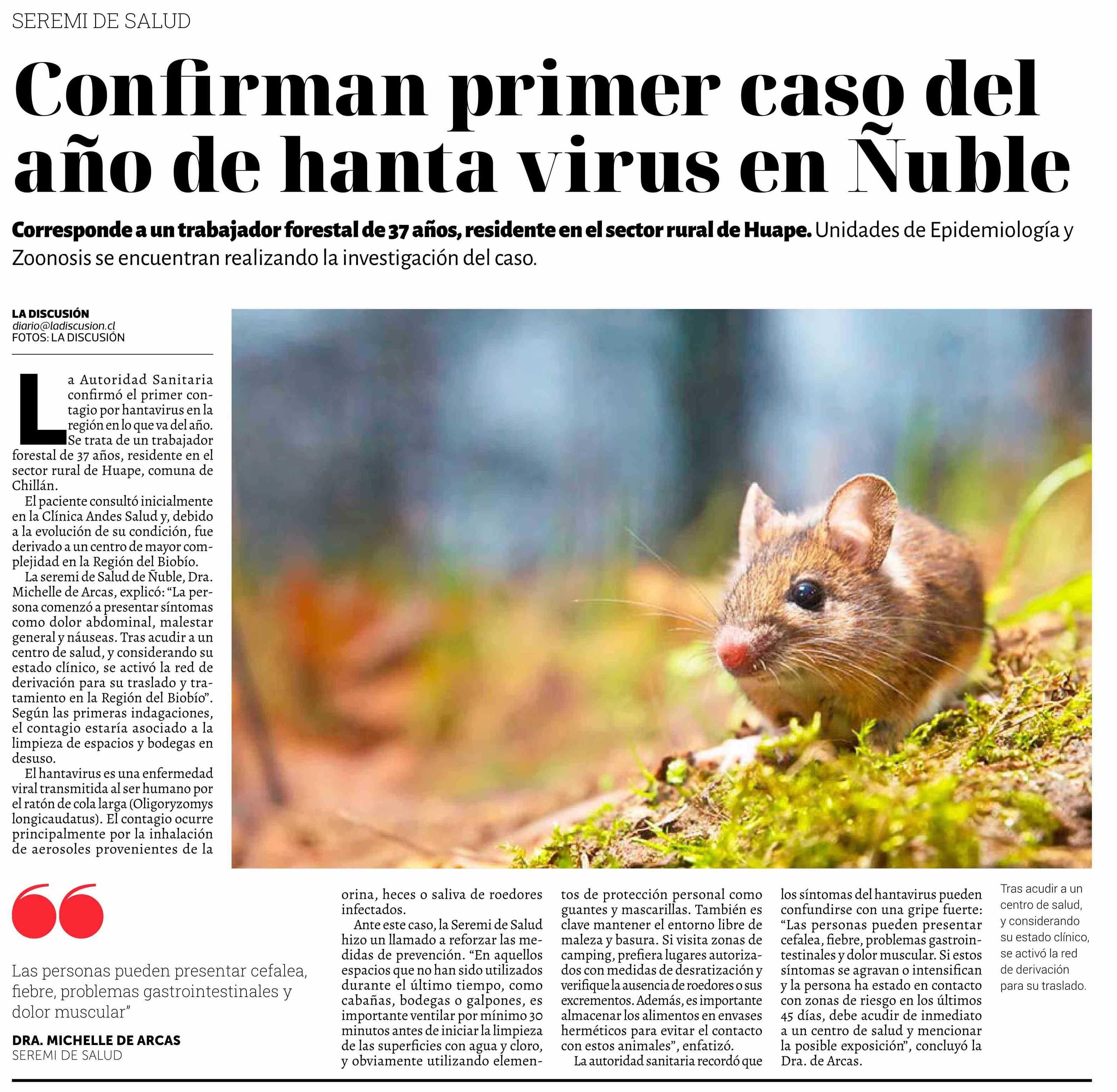 Confirman primer caso del año de hanta virus en Ñuble