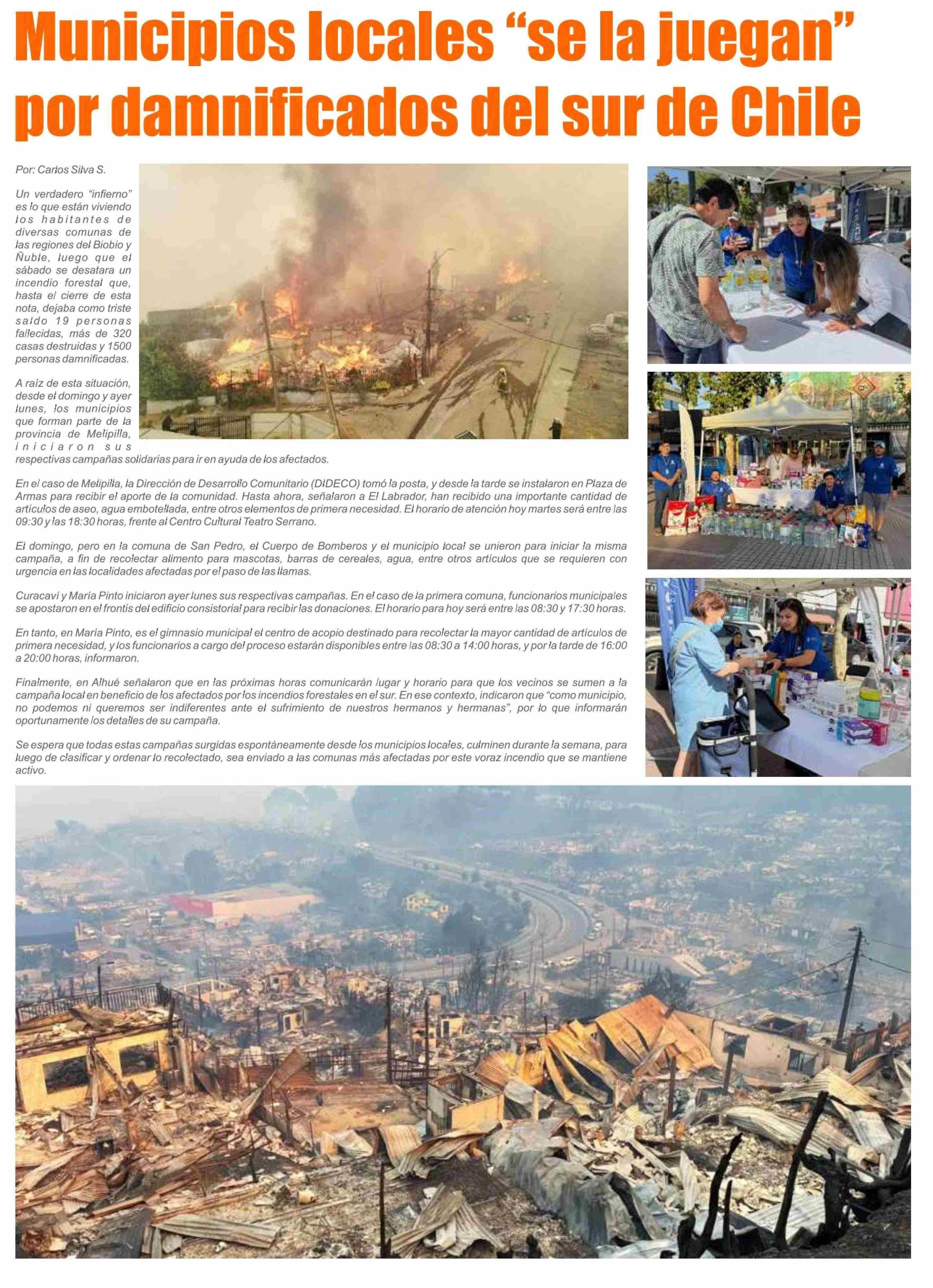 Municipios locales "se la juegan por damnificados del sur de Chile
