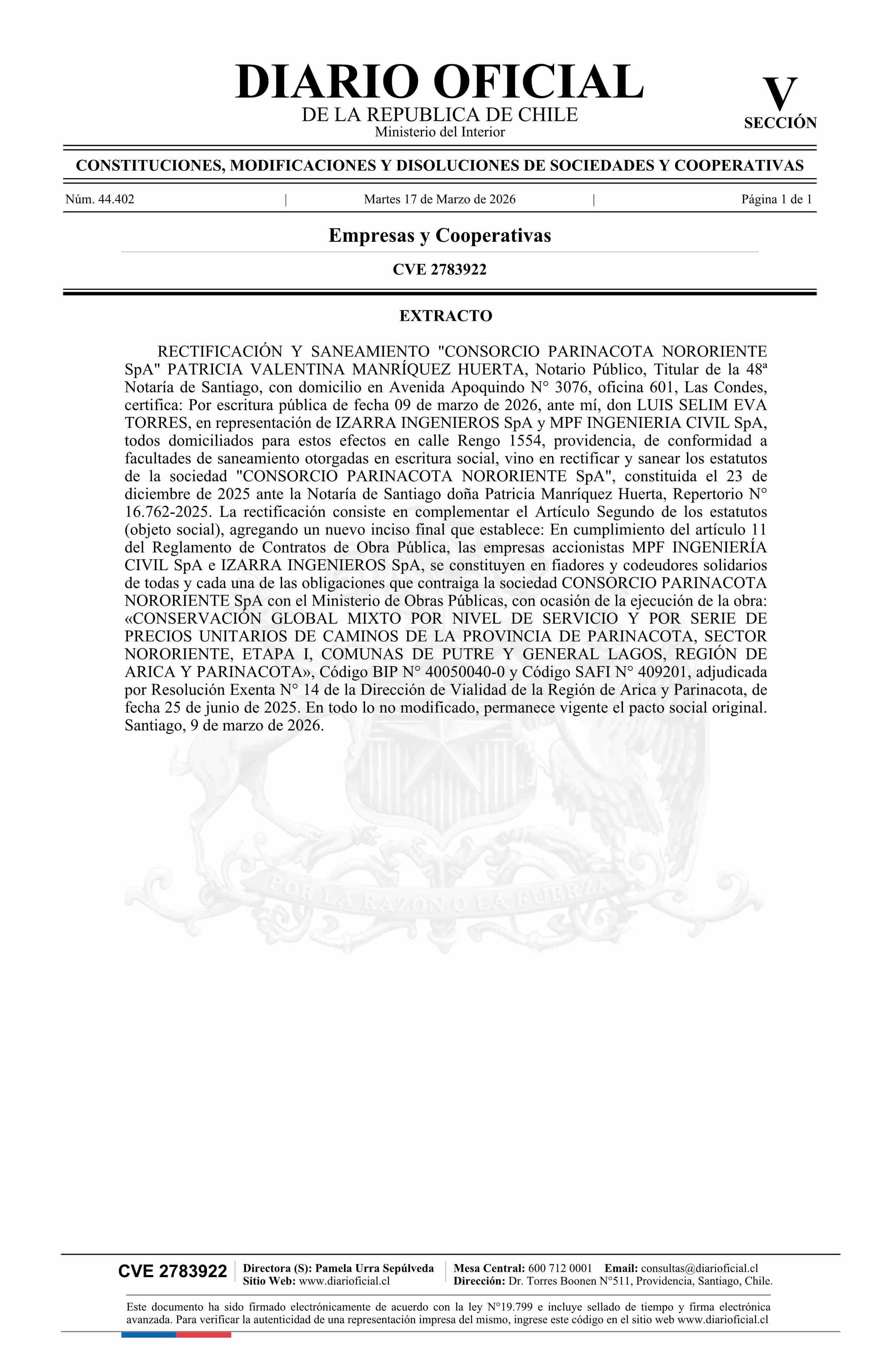 CONSORCIO PARINACOTA NORORIENTE SpA 78.361.873-7*