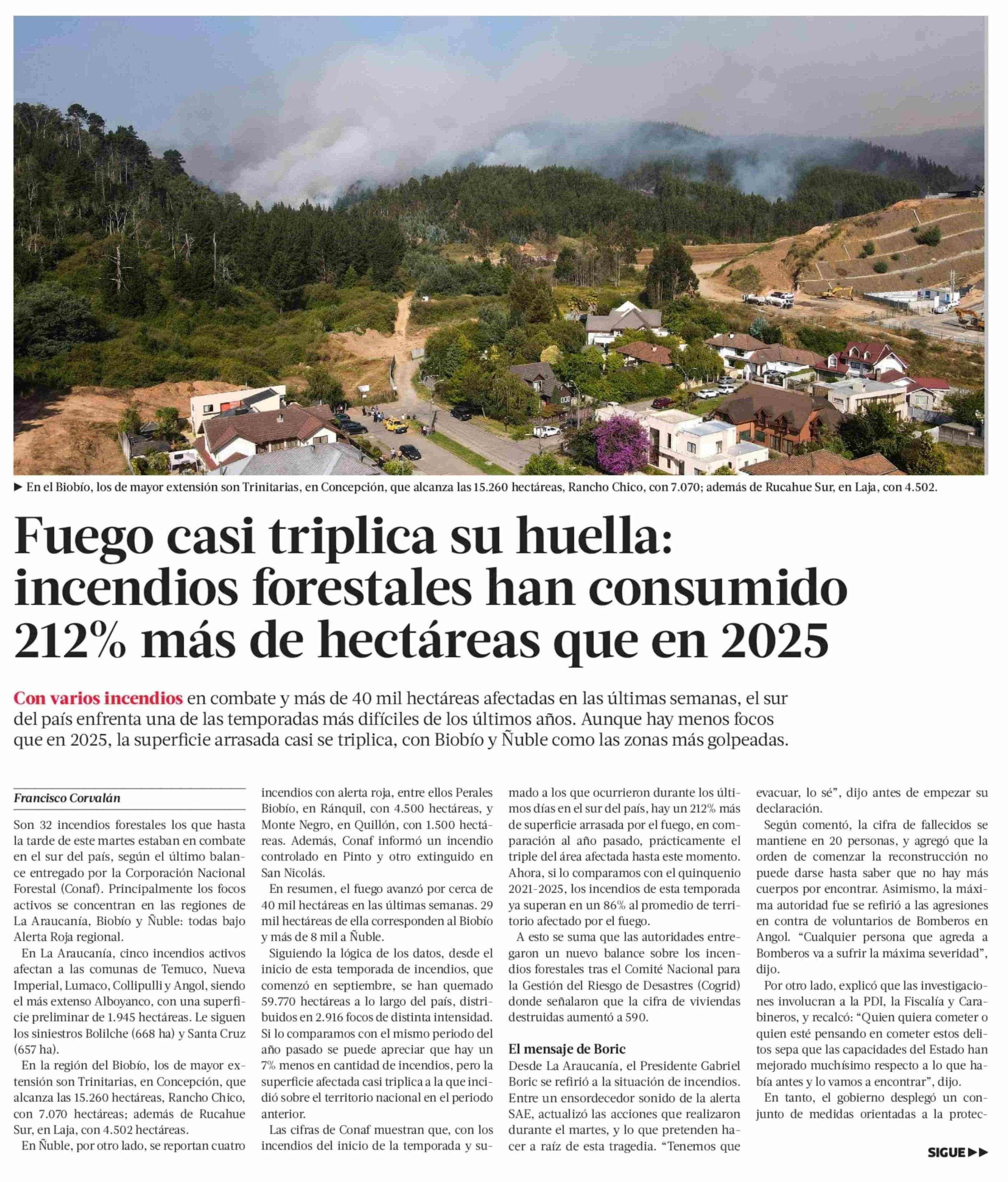 Fuego casi triplica su huella: incendios forestales han consumido 212% más de hectáreas que en 2025