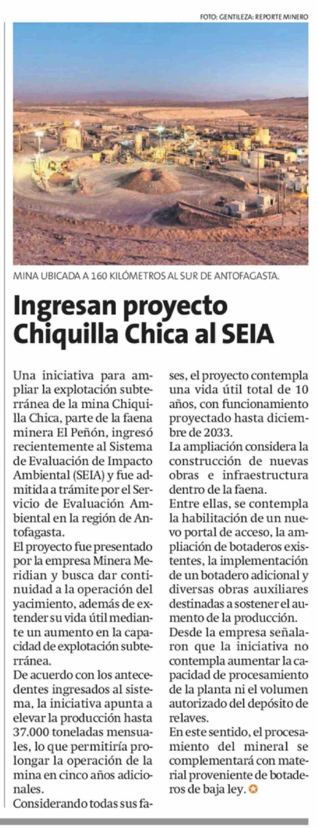 Ingresan proyecto Chiquilla Chica al SEIA
