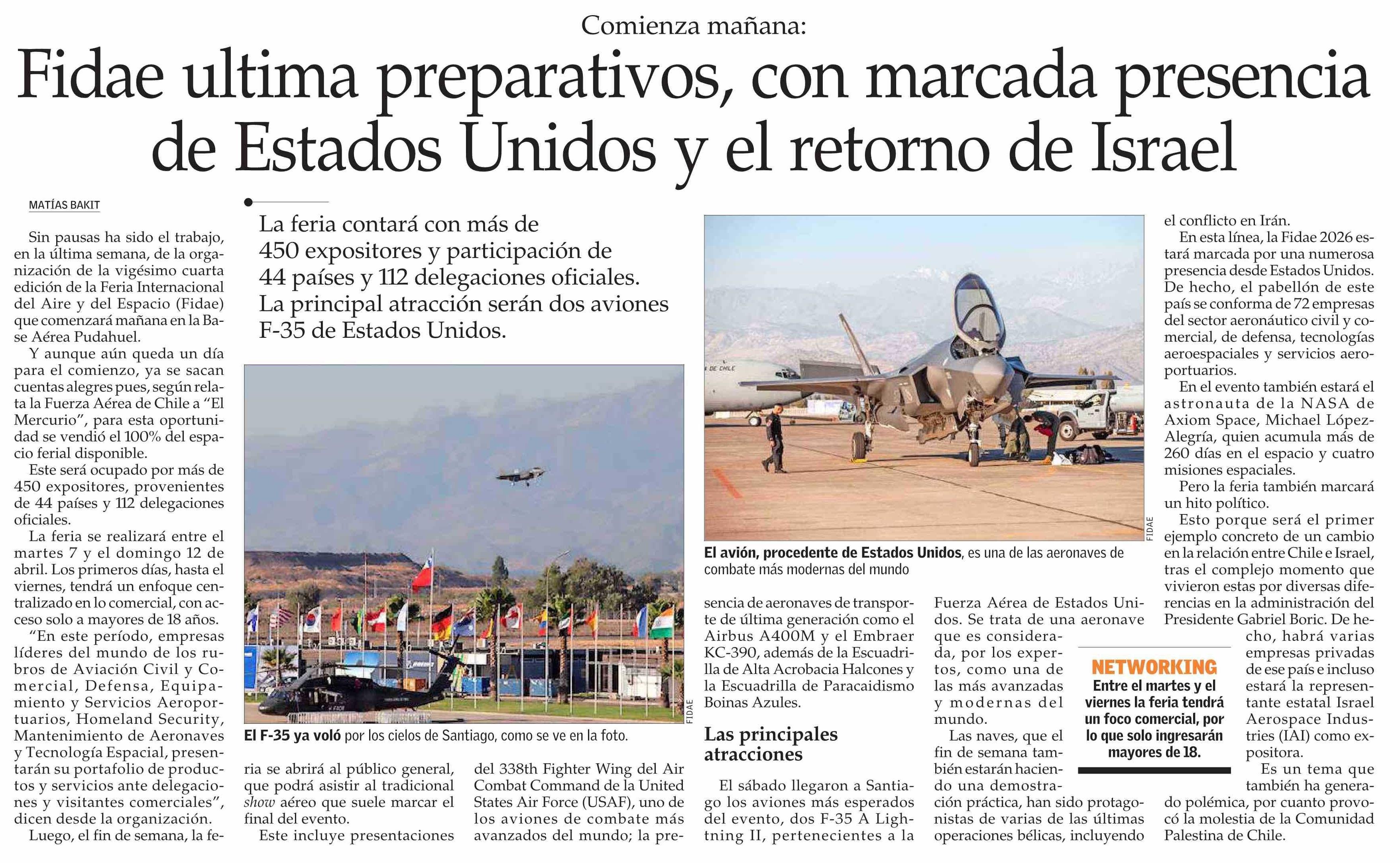 Fidae ultima preparativos, con marcada presencia de Estados Unidos y el retorno de Israel