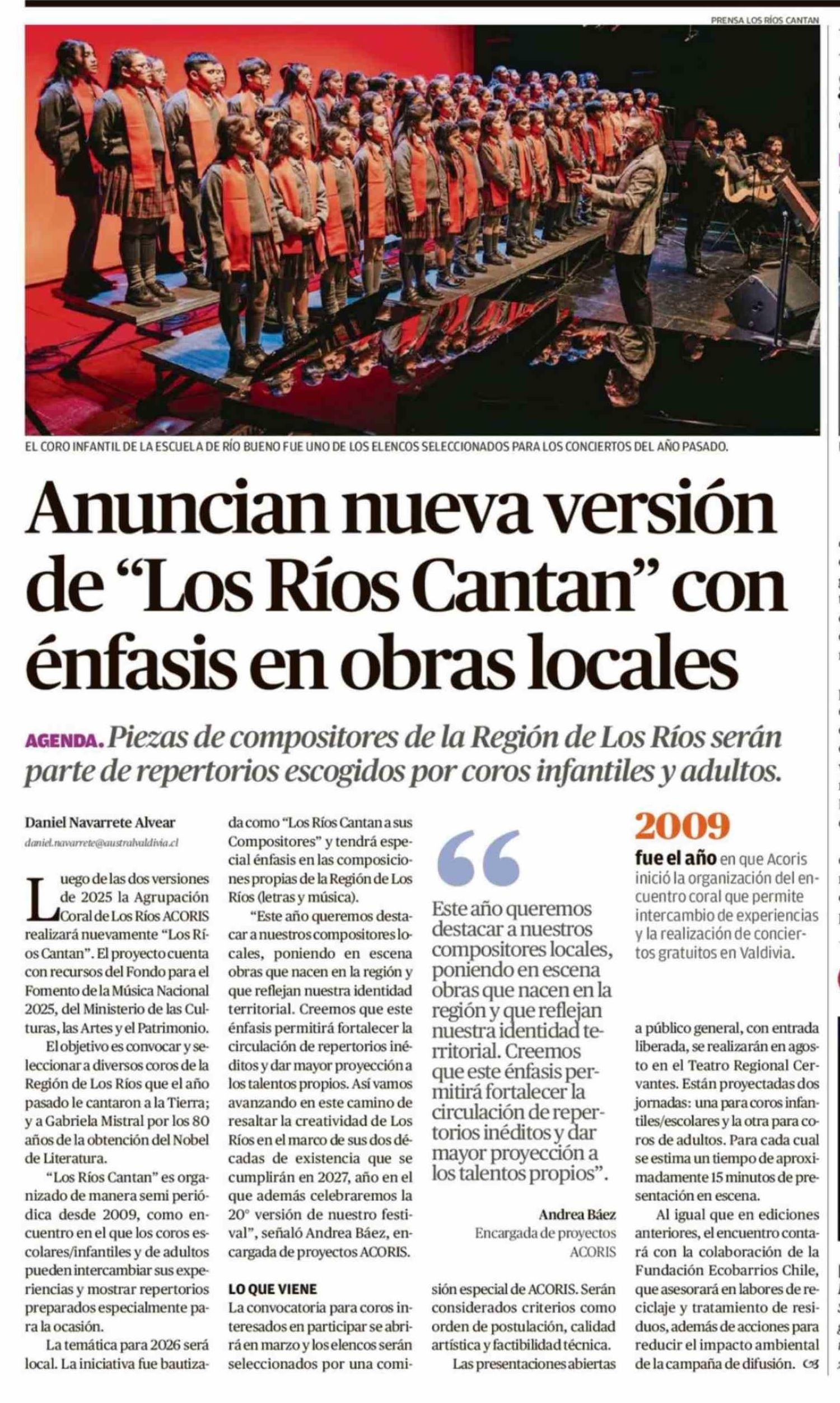 Anuncian nueva versión de "Los Ríos Cantan" con énfasis en obras locales