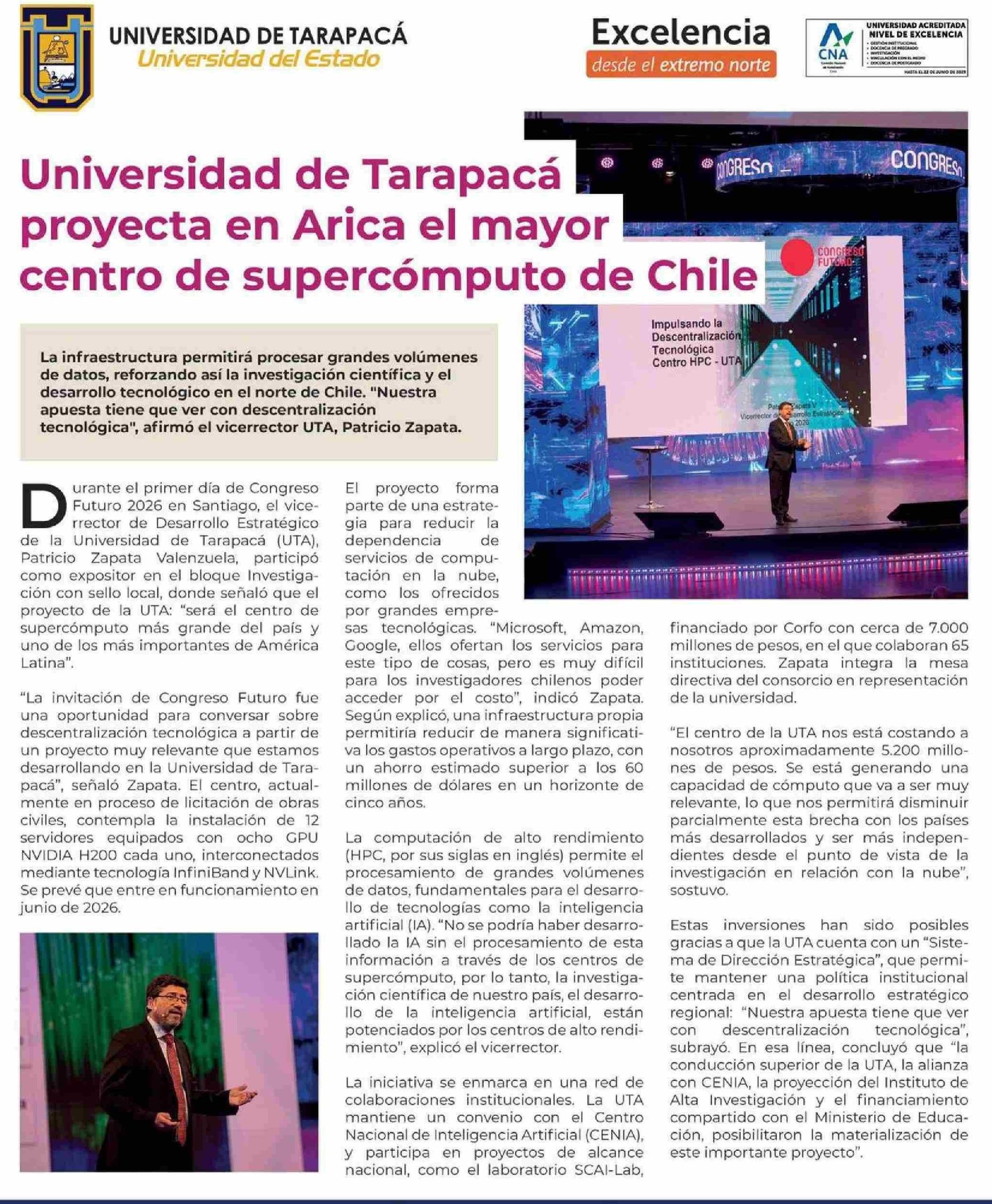 Universidad de Tarapacá proyecta en Arica el mayor centro de supercómputo de Chile