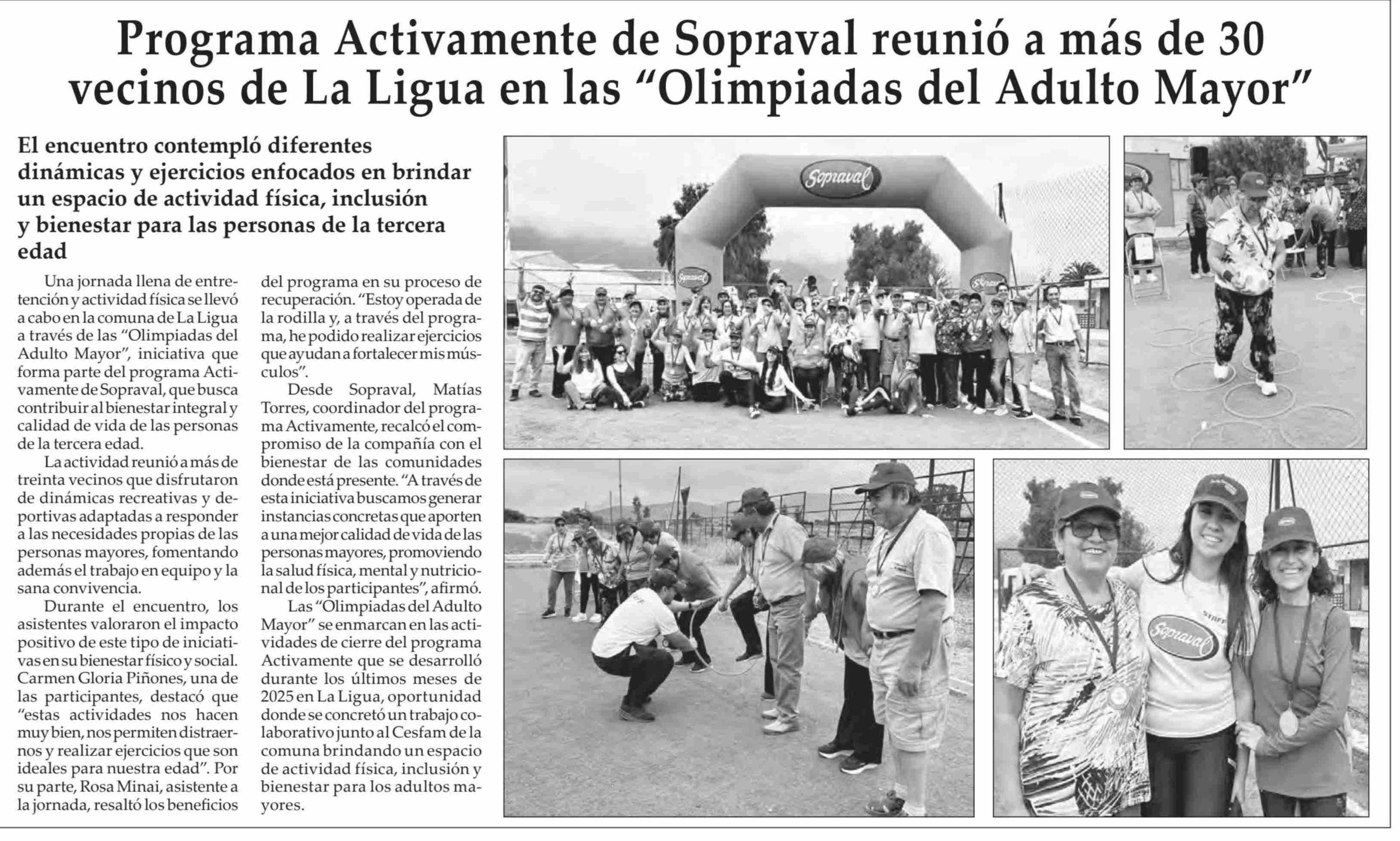 Programa Activamente de Sopraval reunió a más de 30 vecinos de La Ligua en las "Olimpiadas del Adulto Mayor"