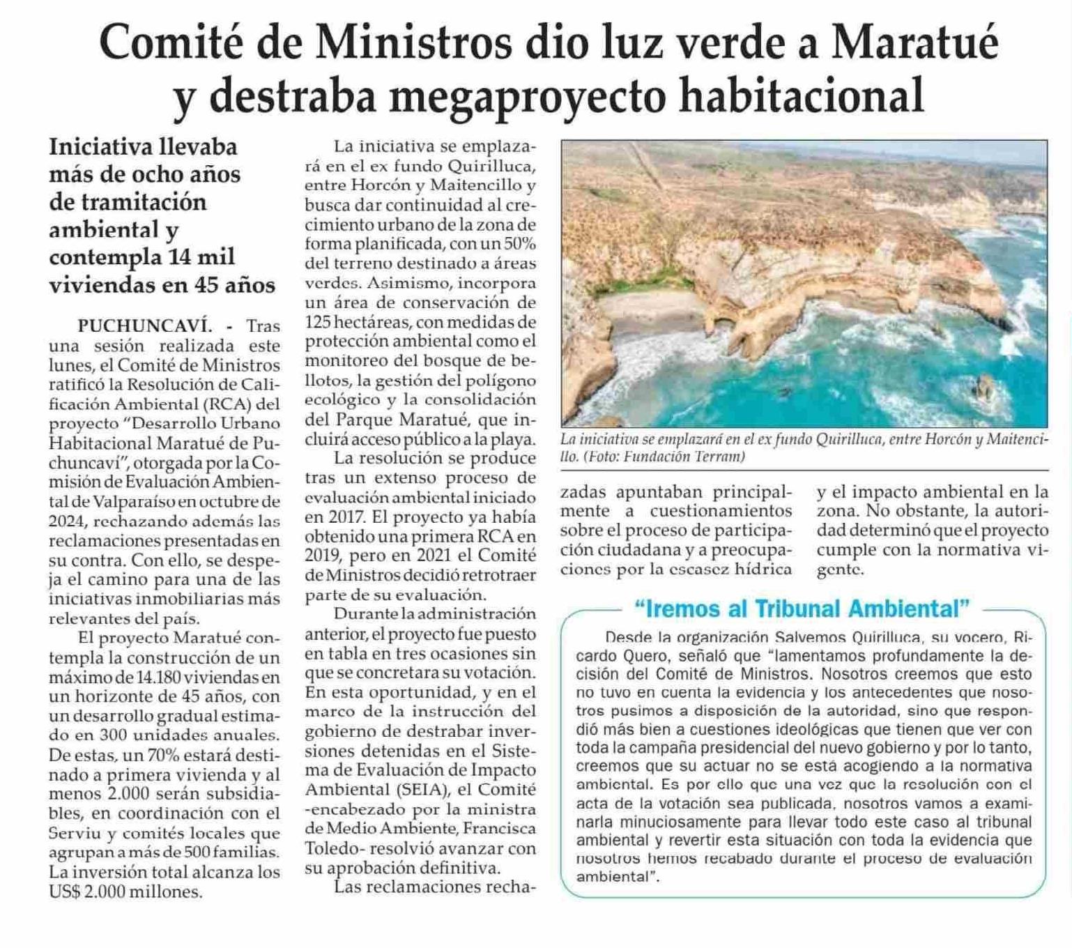 Comité de Ministros dio luz verde a Maratué y destraba megaproyecto habitacional