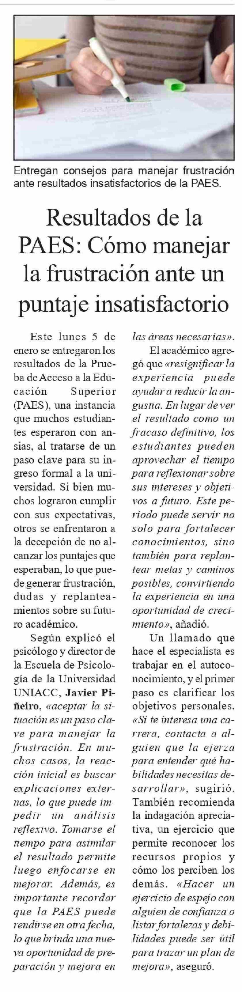 Resultados de la PAES: Cómo manejar la frustración ante un puntaje insatisfactorio