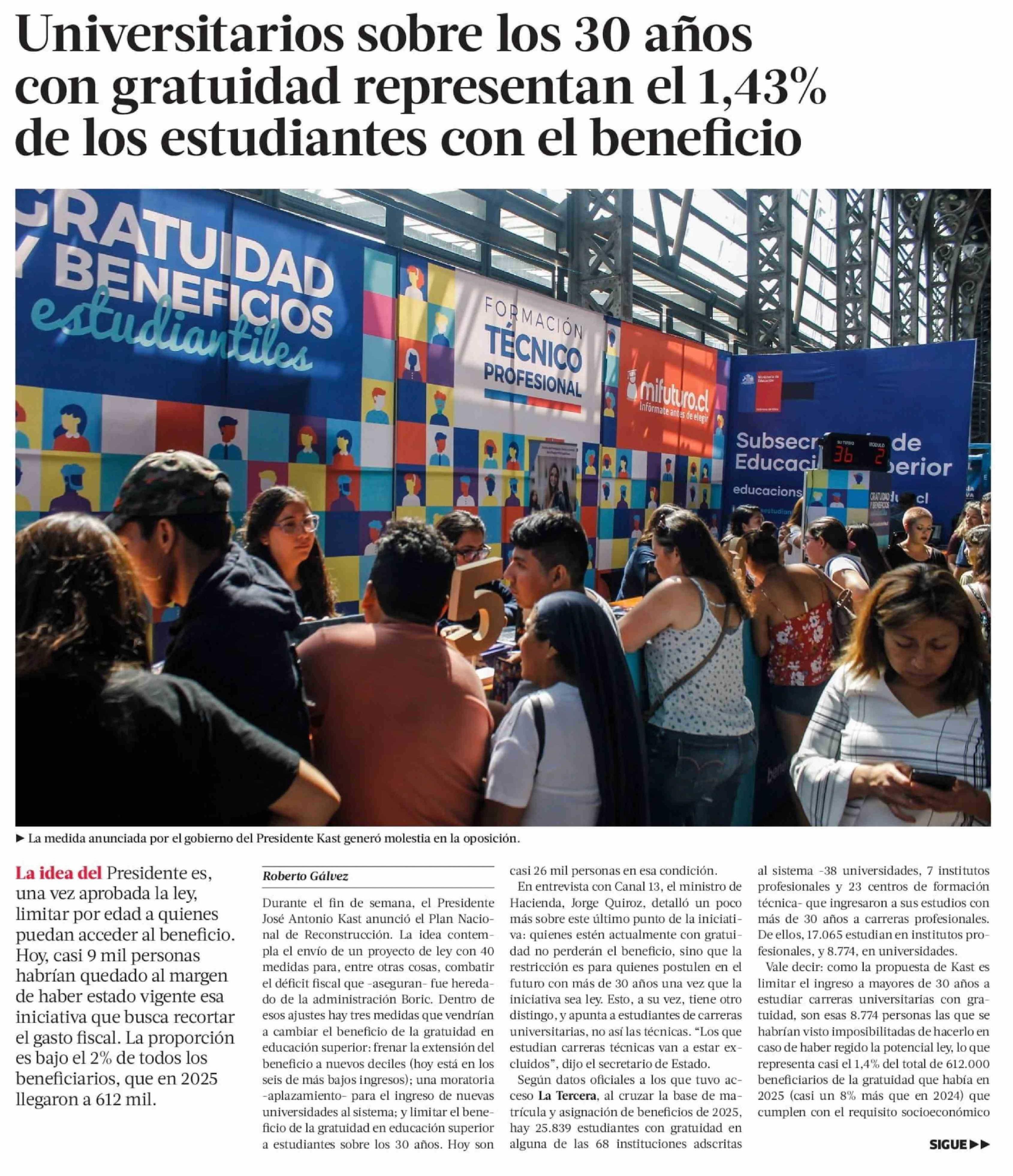 Universitarios sobre los 30 años con gratuidad representan el 1,43% de los estudiantes con el beneficio