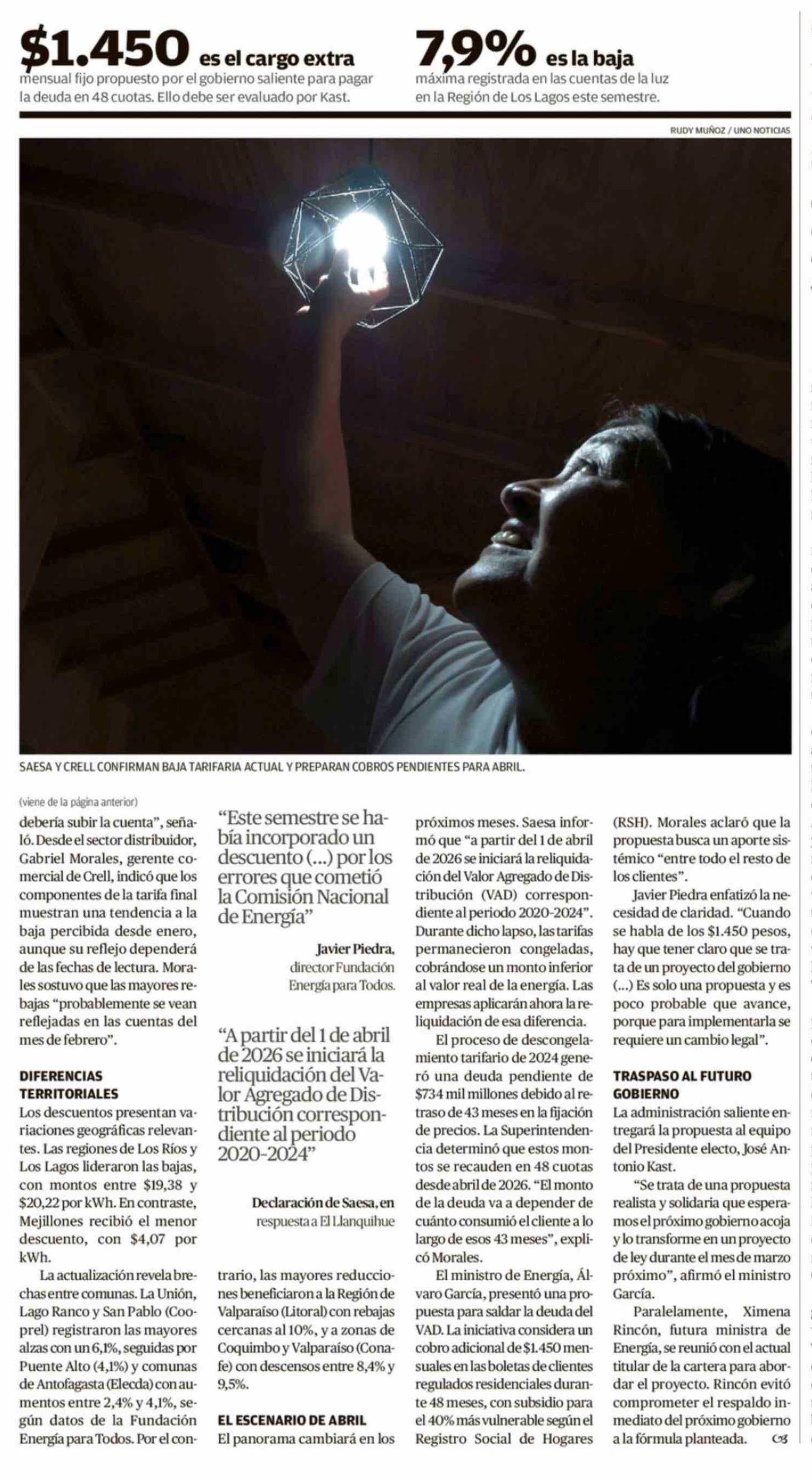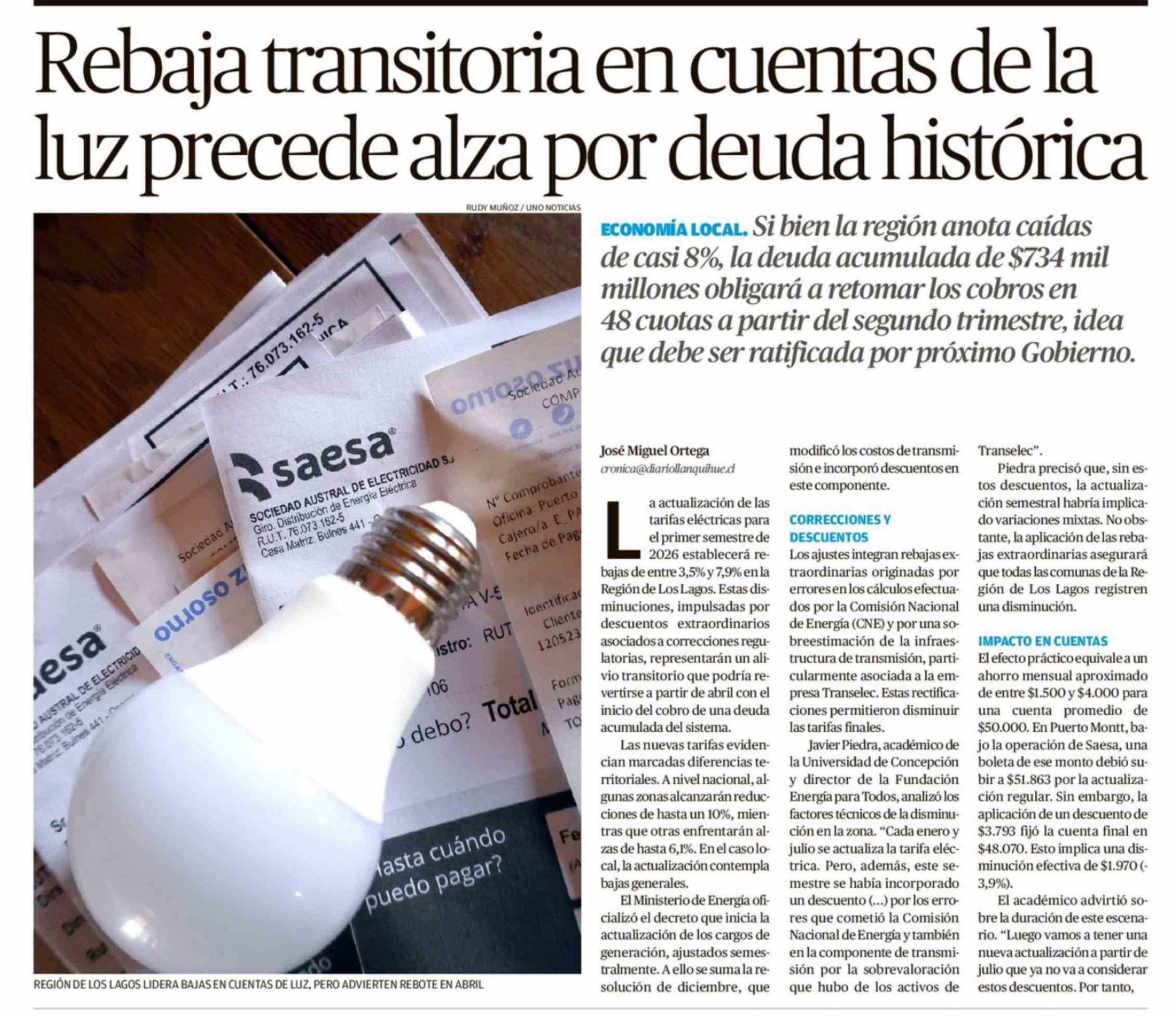 Rebaja transitoria en cuentas de la luz precede alza por deuda histórica