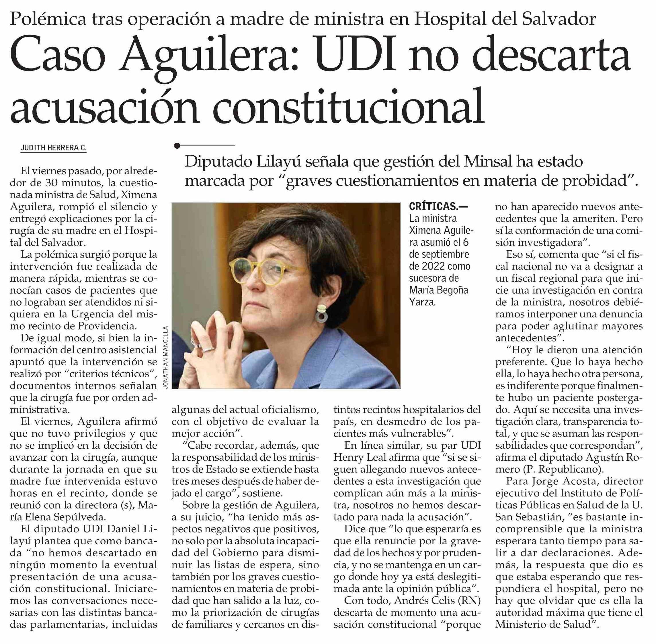 Caso Aguilera: UDI no descarta acusación constitucional
