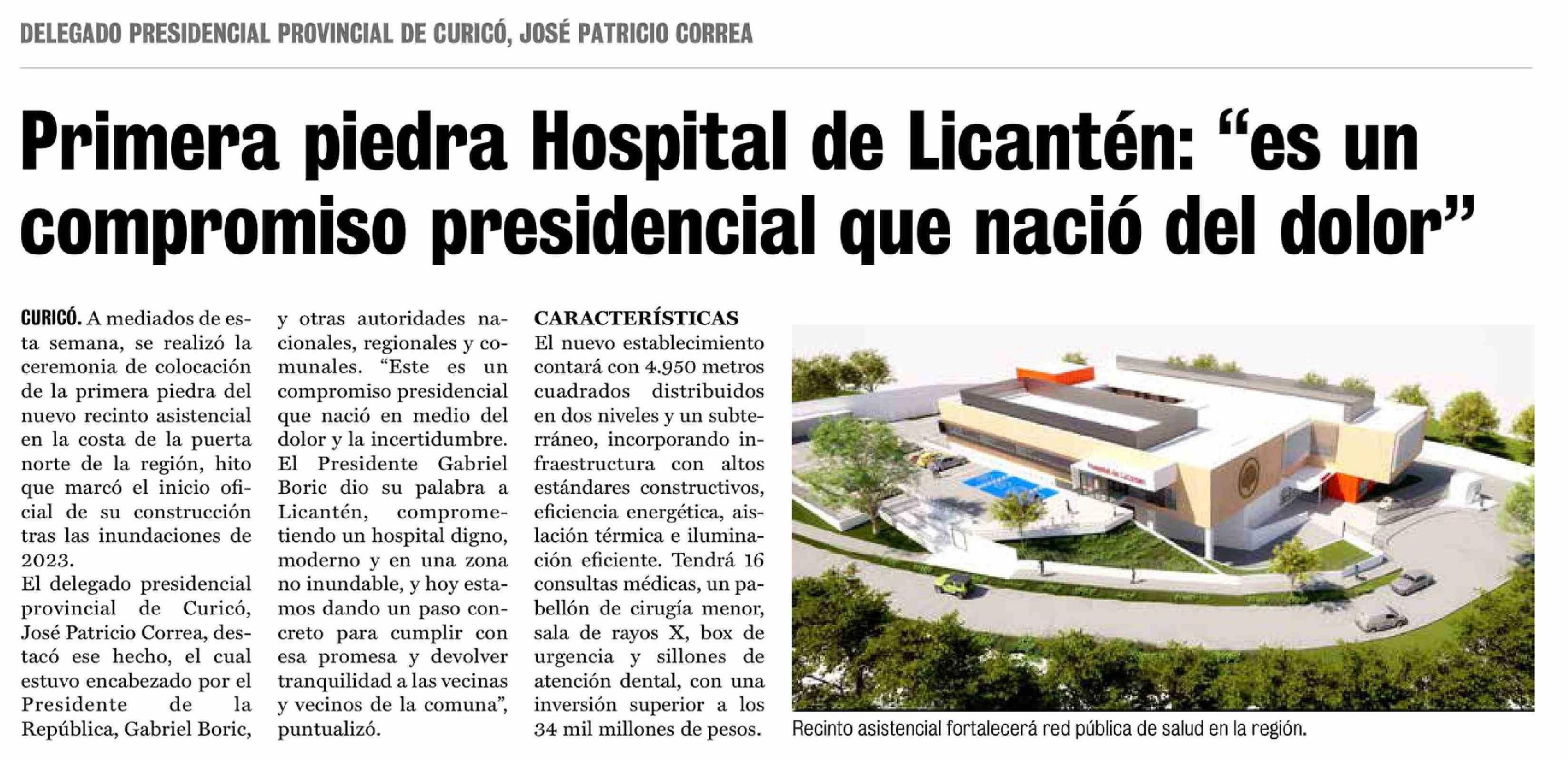 Primera piedra Hospital de Licanten: "es un compromiso presidencial que nació del dolor"