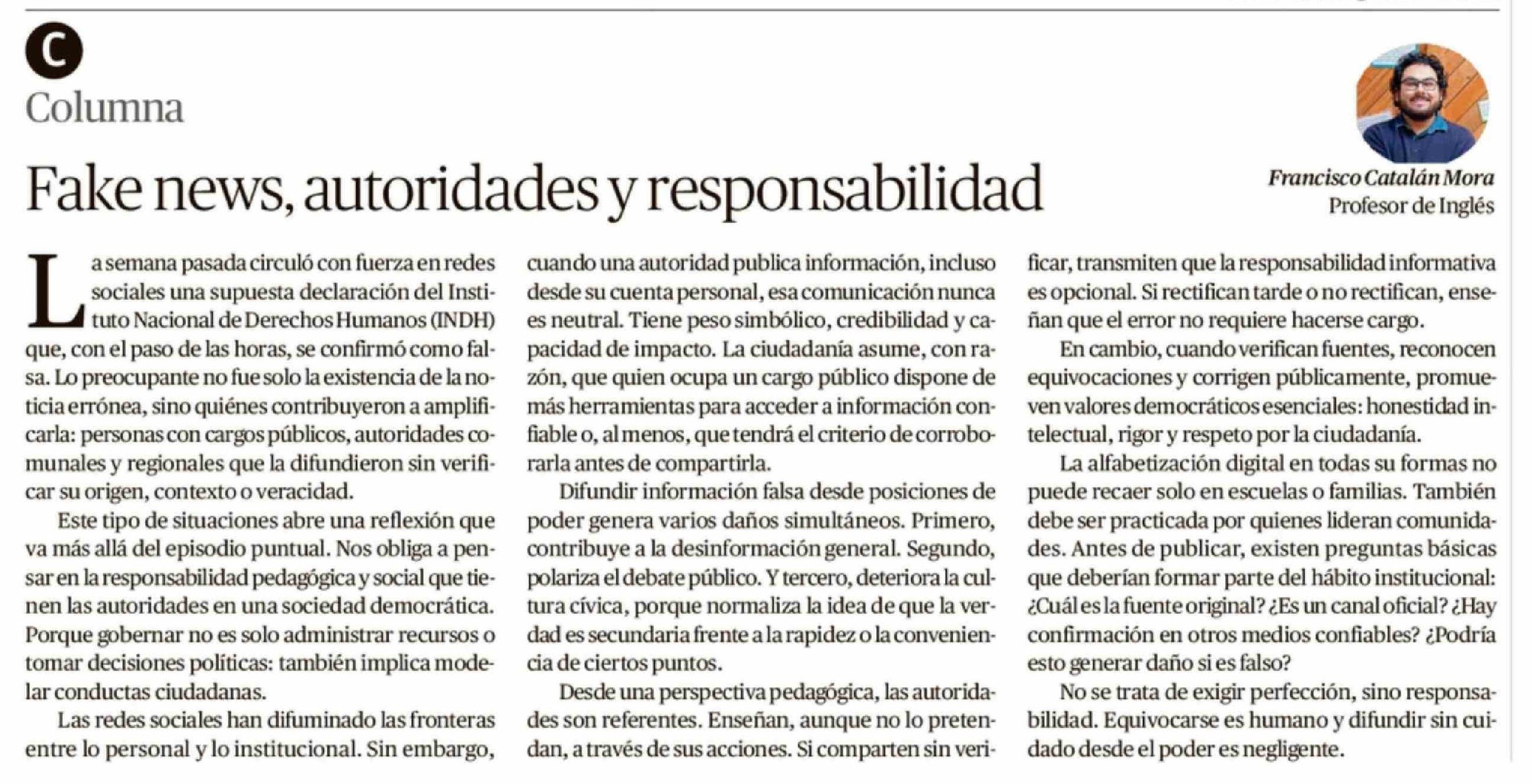 Columnas de Opinión: Fake news, autoridades y responsabilidad