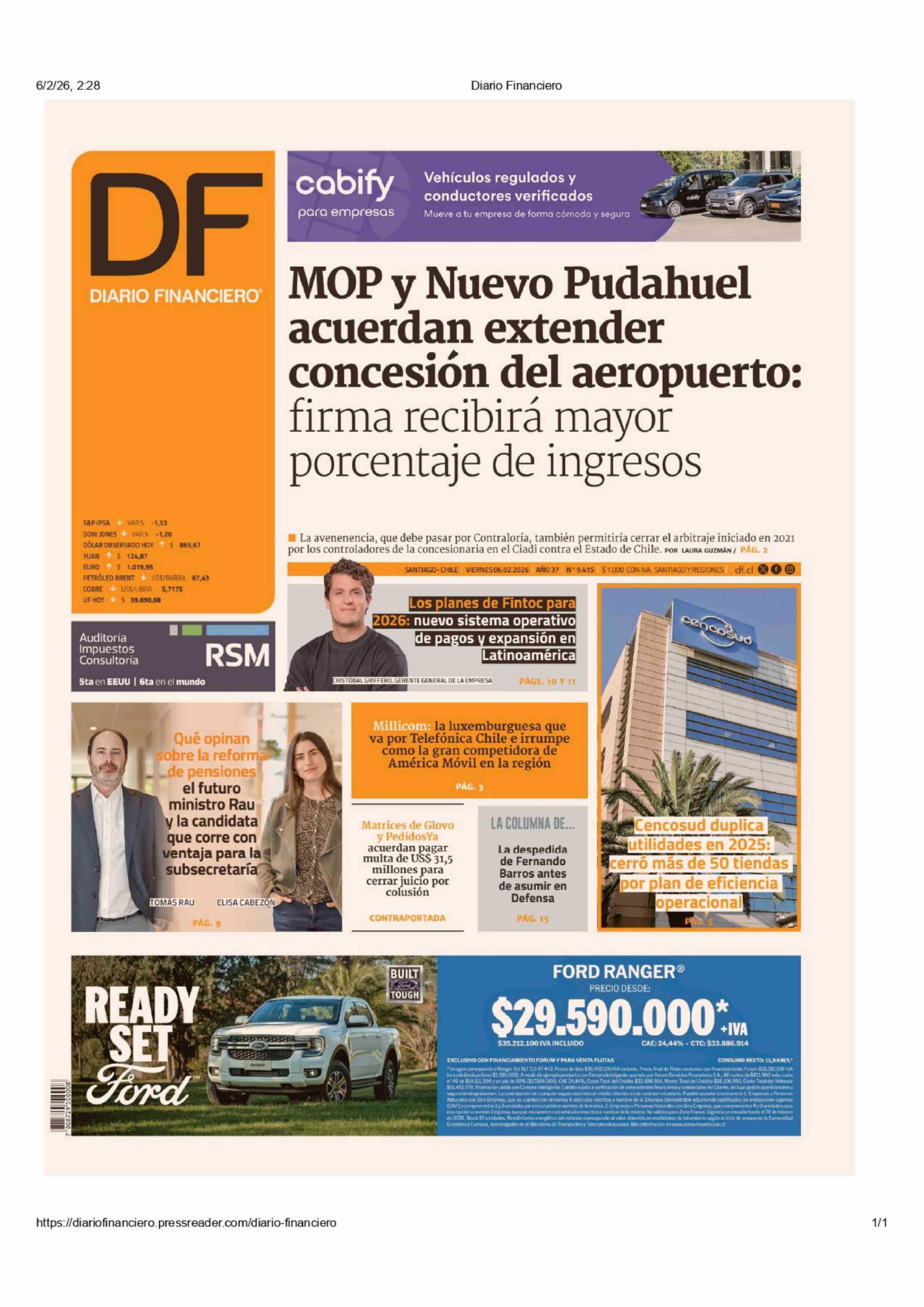 PORTADA DIARIO FINANCIERO CHILE