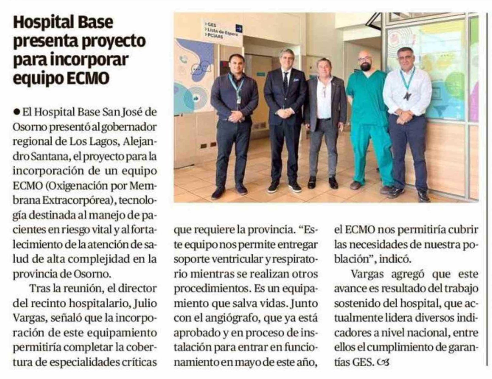 Hospital Base presenta proyecto para incorporar equipo ECMO