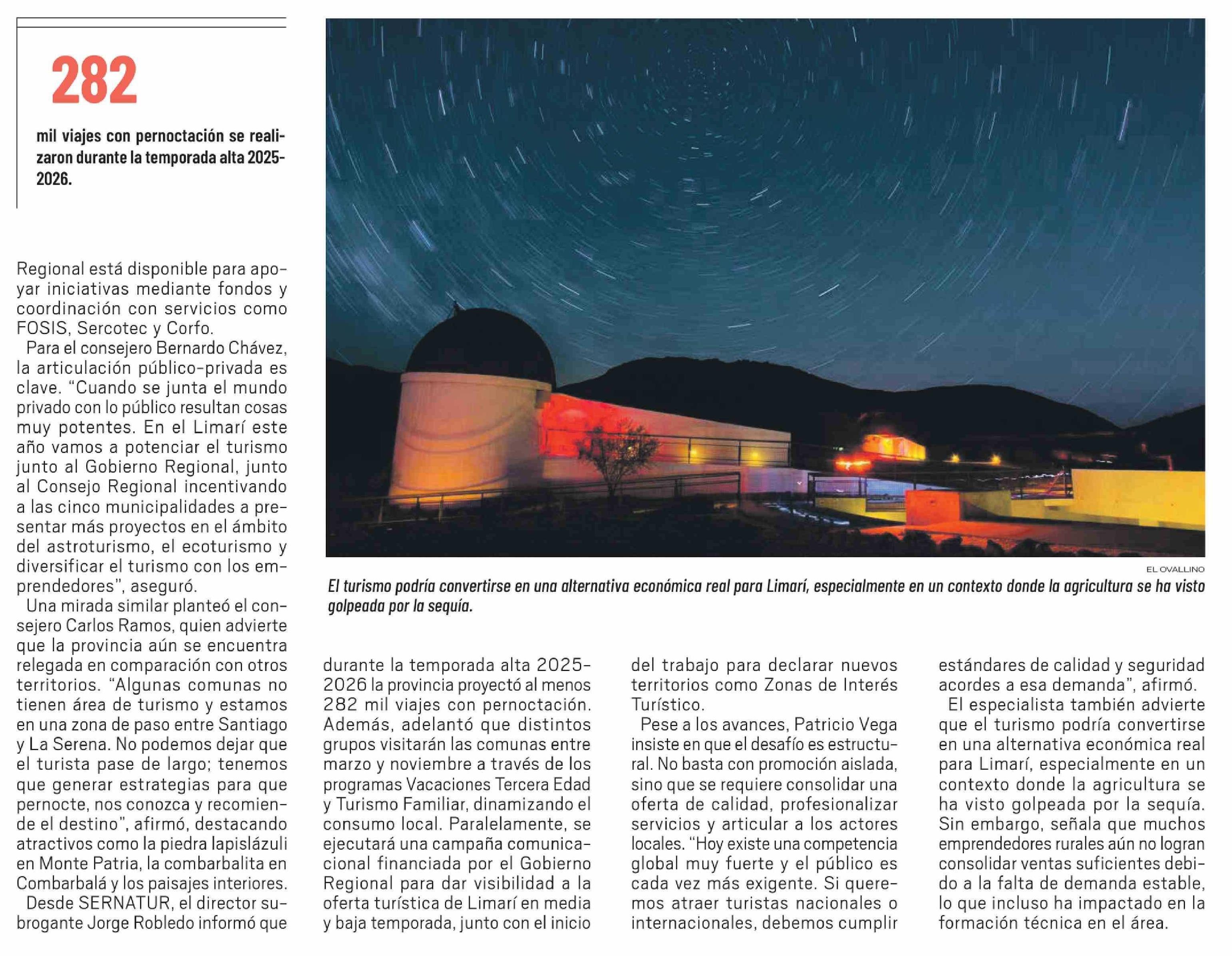 | Título: | Regional está disponible para apoyar iniciativas mediante fondos y coordinación con servicios como FOSIS, Sercotec y Corfo. Para el consejero Bernardo Chávez, la articulación público-privada es clave. "Cuando se junta el mundo privado con lo público resultan cosas muy potentes. En el Limarí este año |