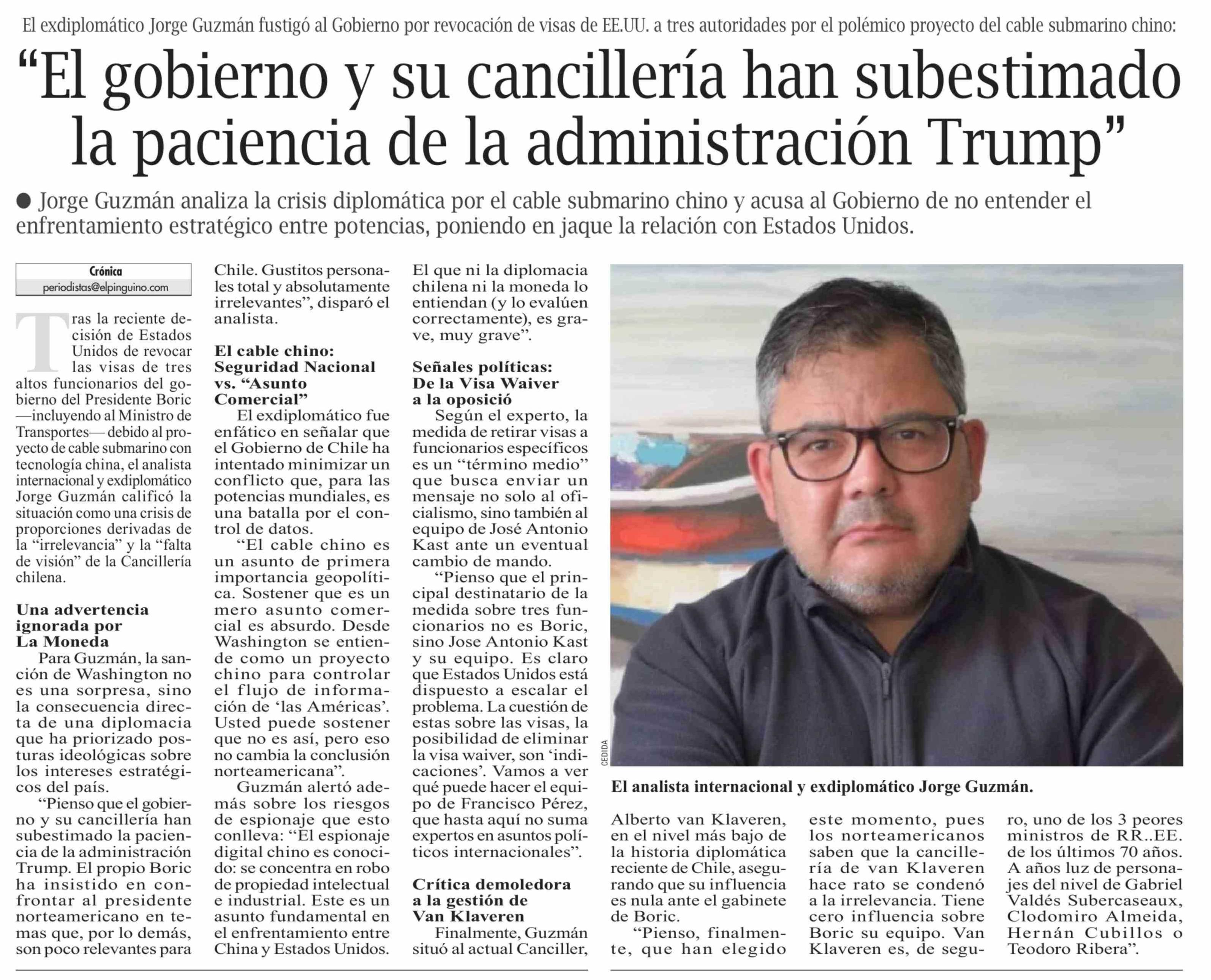 "El gobierno y su cancillería han subestimado la paciencia de la administración Trump"