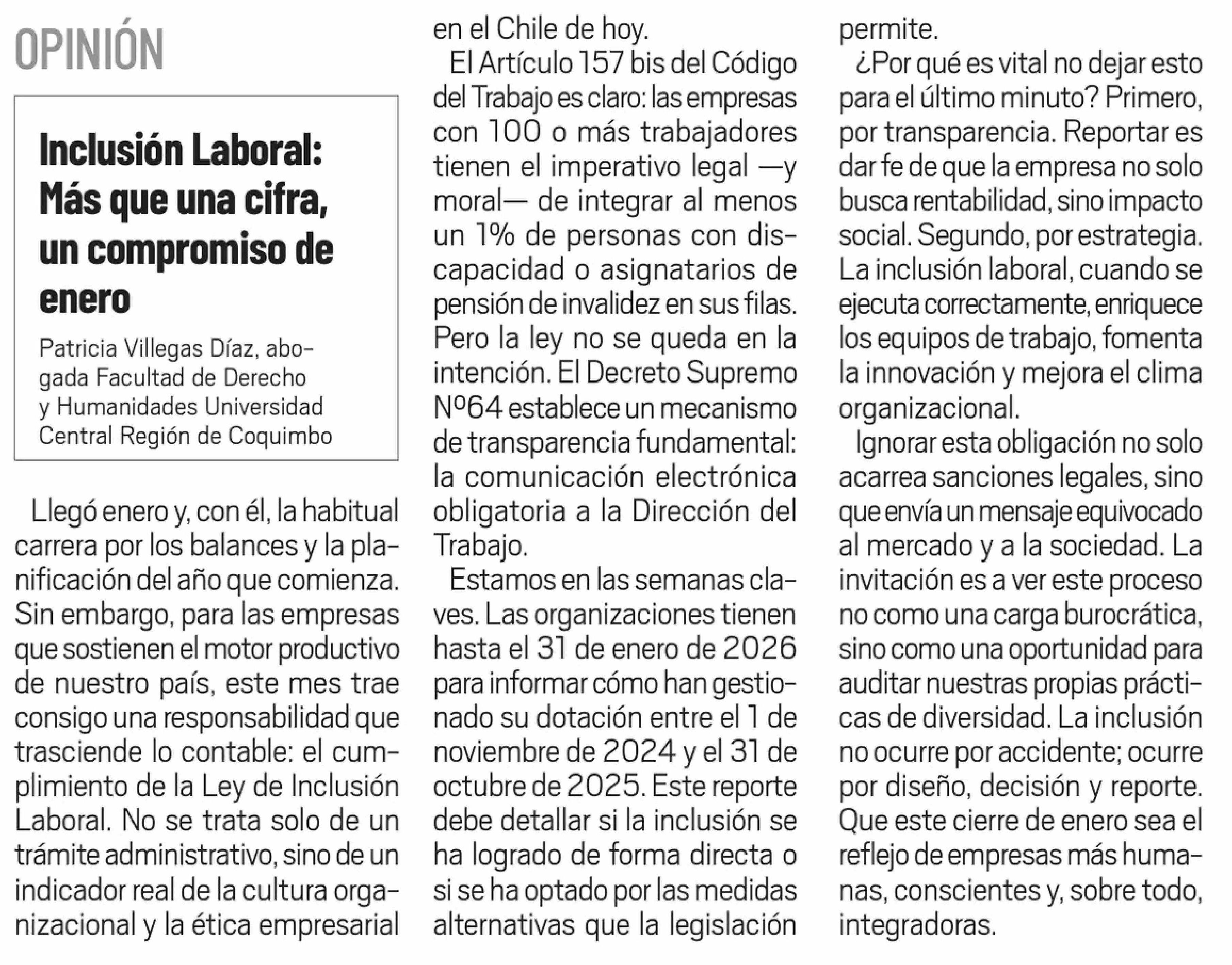 Columnas de Opinión: Inclusión Laboral: Más que una cifra, un compromiso de enero