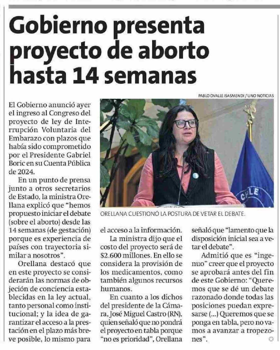 Gobierno presenta proyecto de aborto hasta 14 semanas