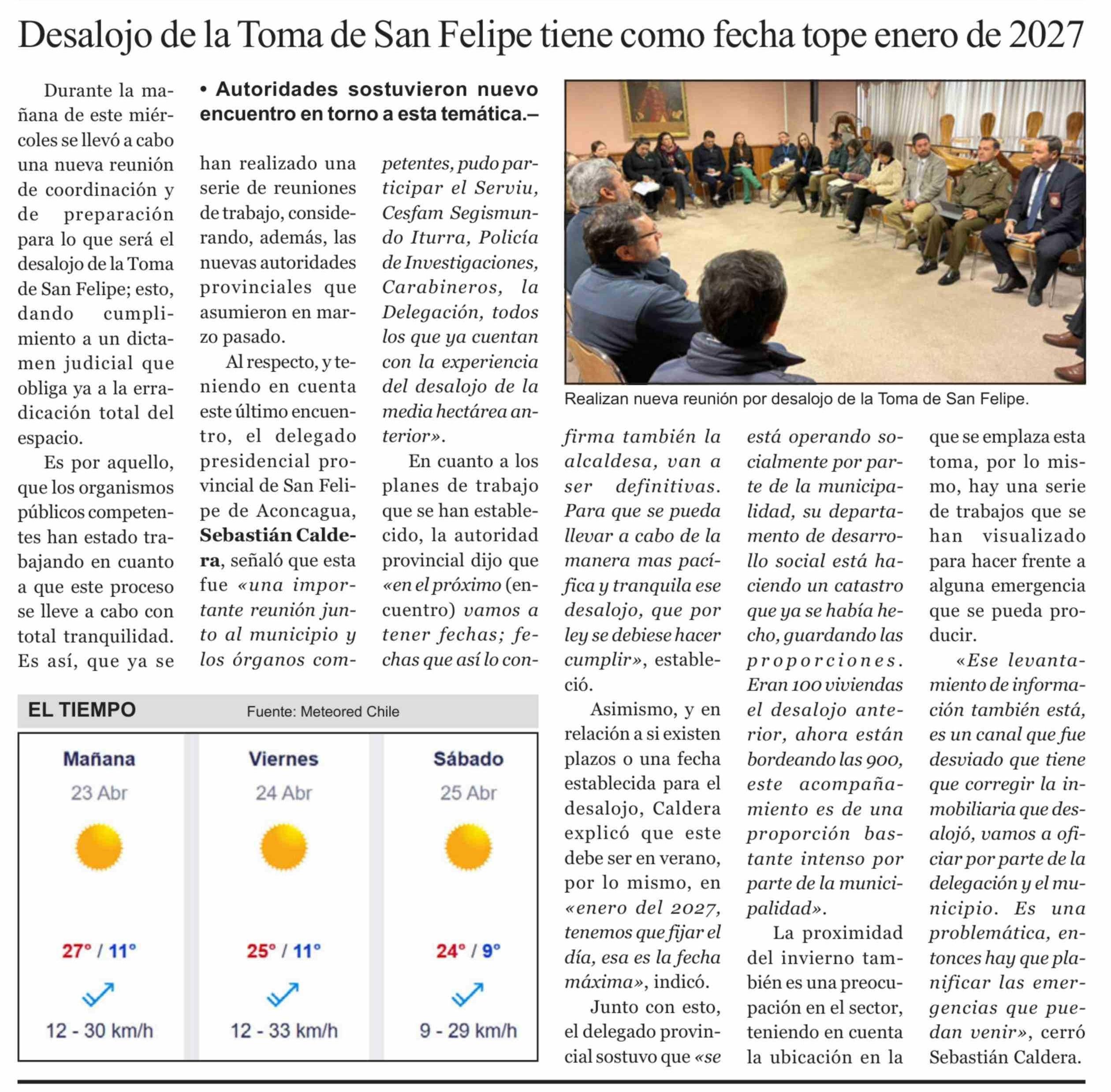 Desalojo de la Toma de San Felipe tiene como fecha tope enero de 2027