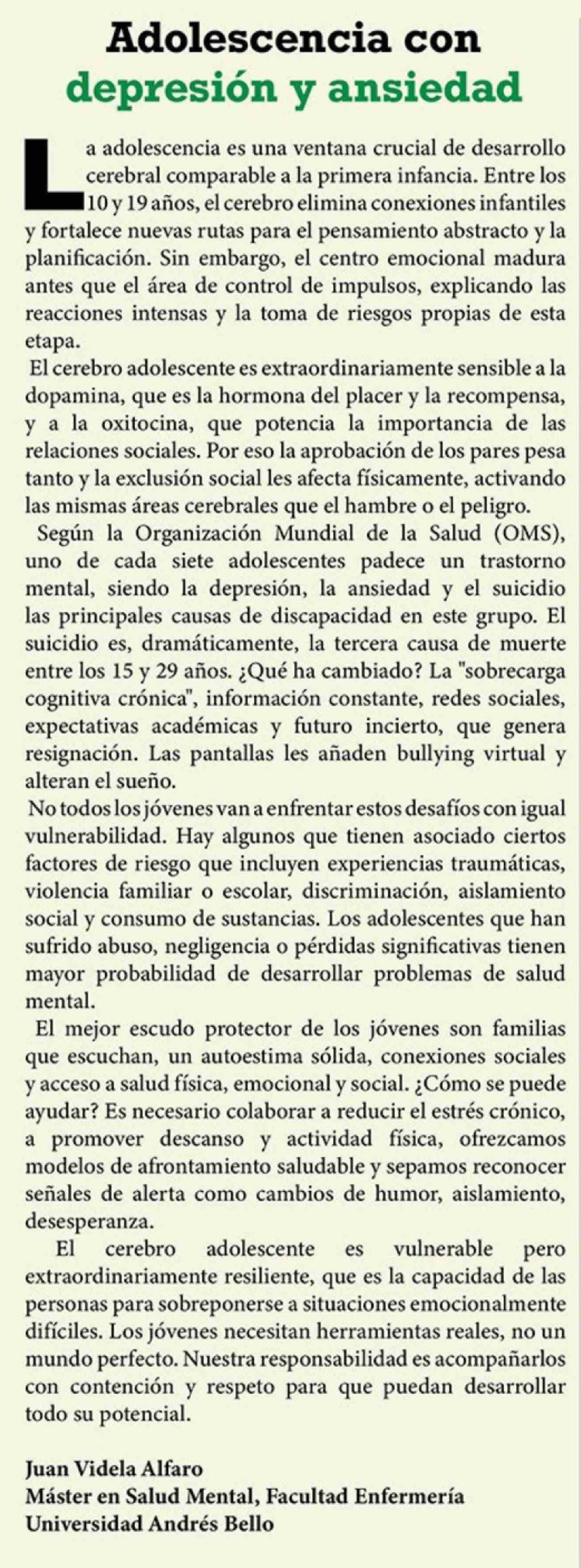 Título: Columnas de Opinión: Adolescencia con depresión y ansiedad