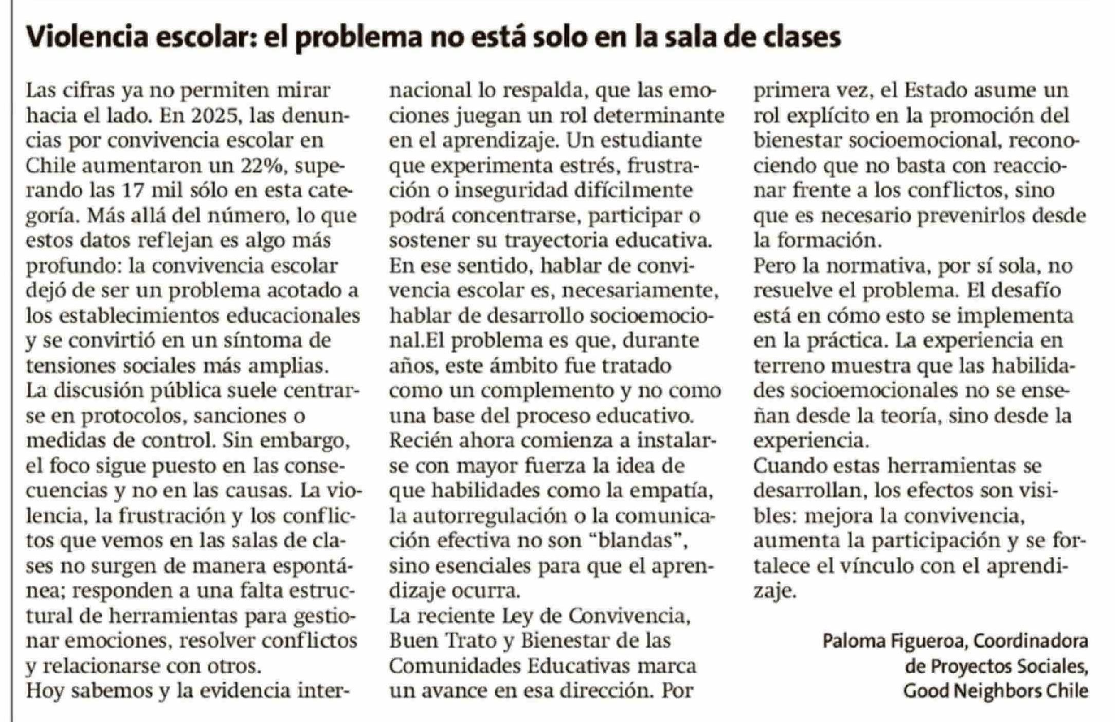 Cartas: Violencia escolar: el problema no está solo en la sala de clases