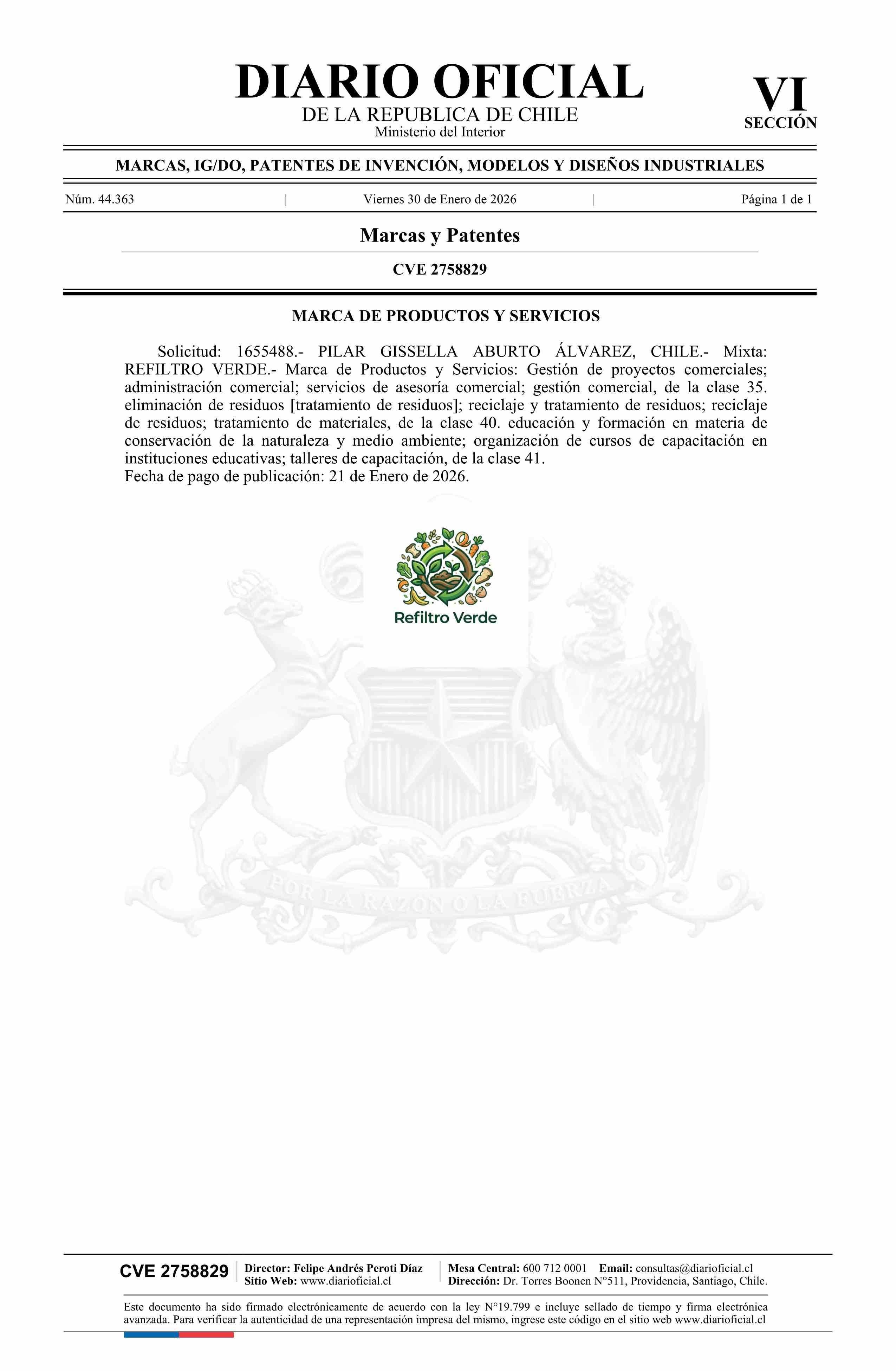 Diario Oficial Edición Electrónica (Diario Oficial de Chile - 6 Marcas Y Patentes)