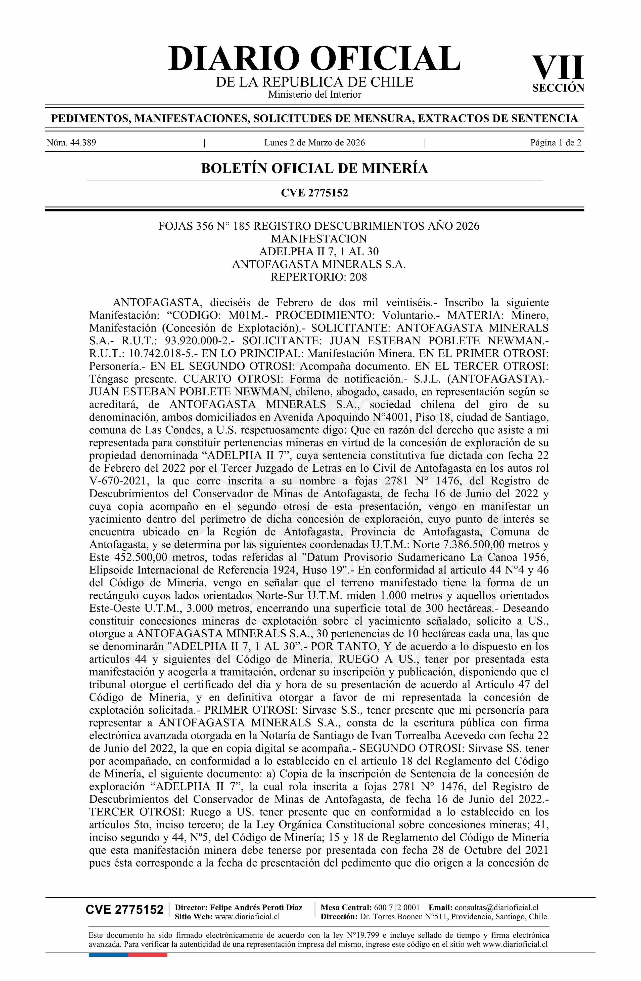 ADELPHA II 7, 1 AL 30 / Antofagasta Minerals S.A.