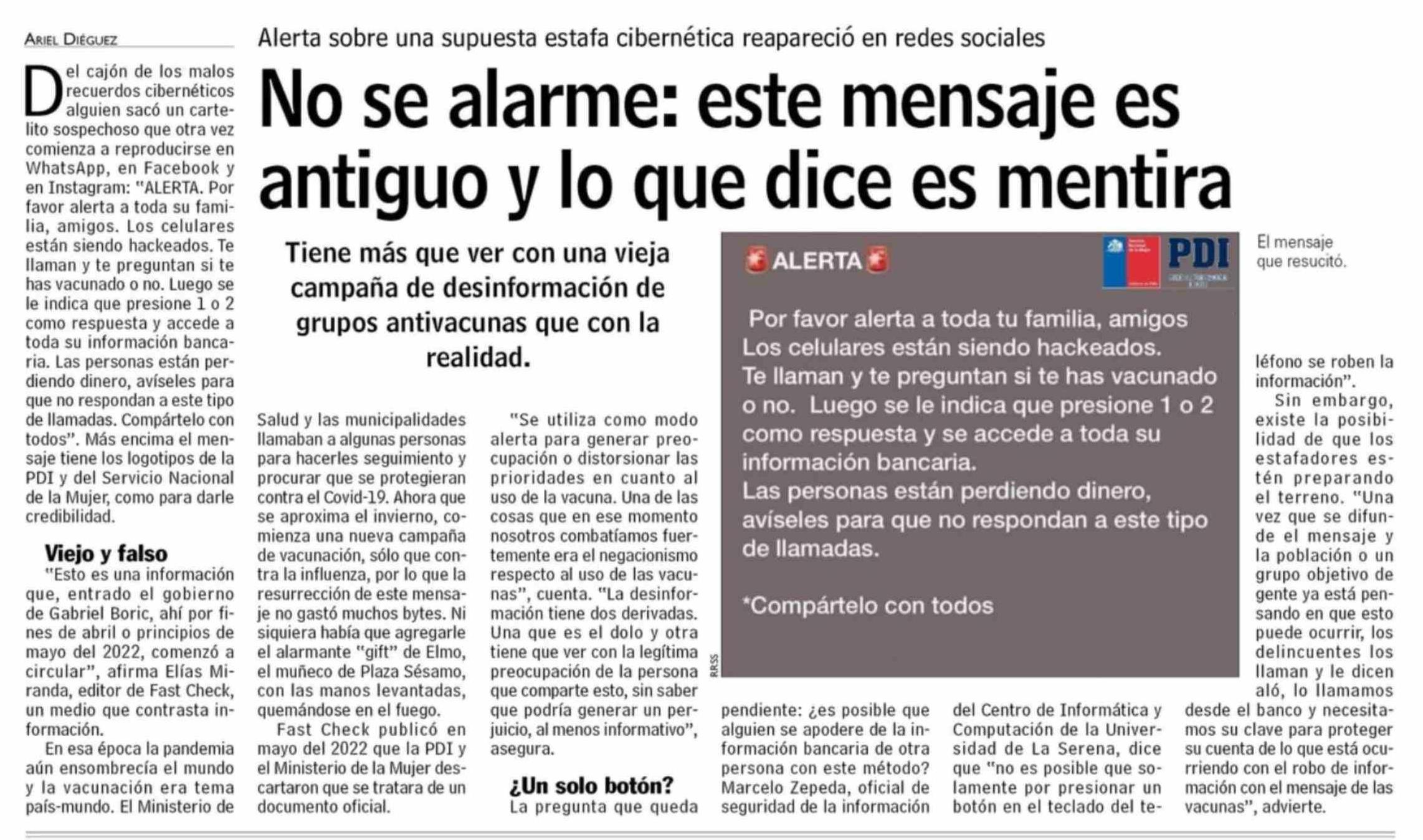 No se alarme: este mensaje es antiguo y lo que dice es mentira