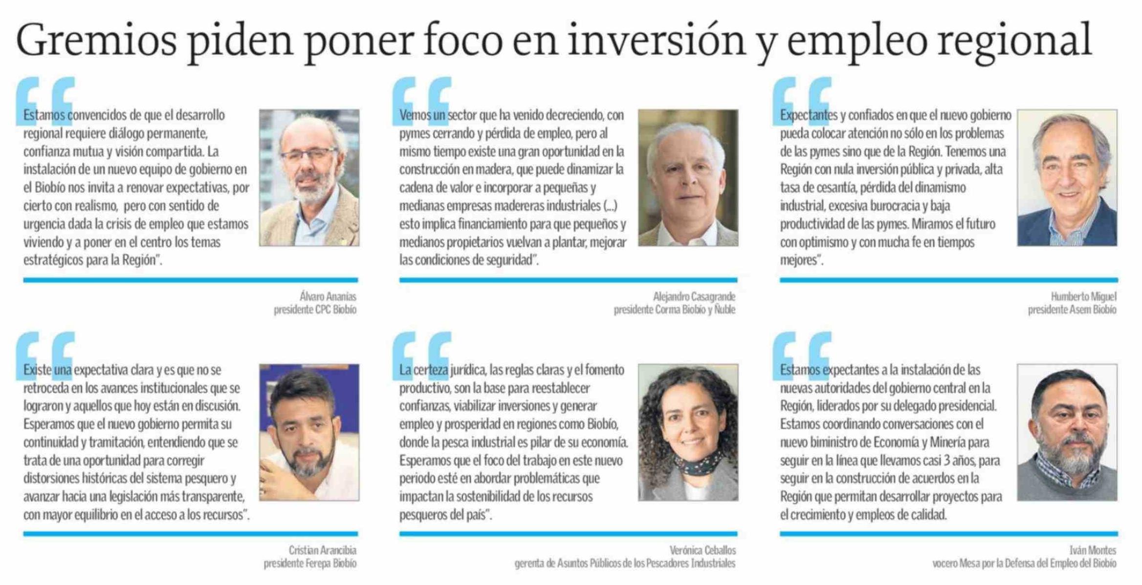 Gremios piden poner foco en inversión y empleo regional