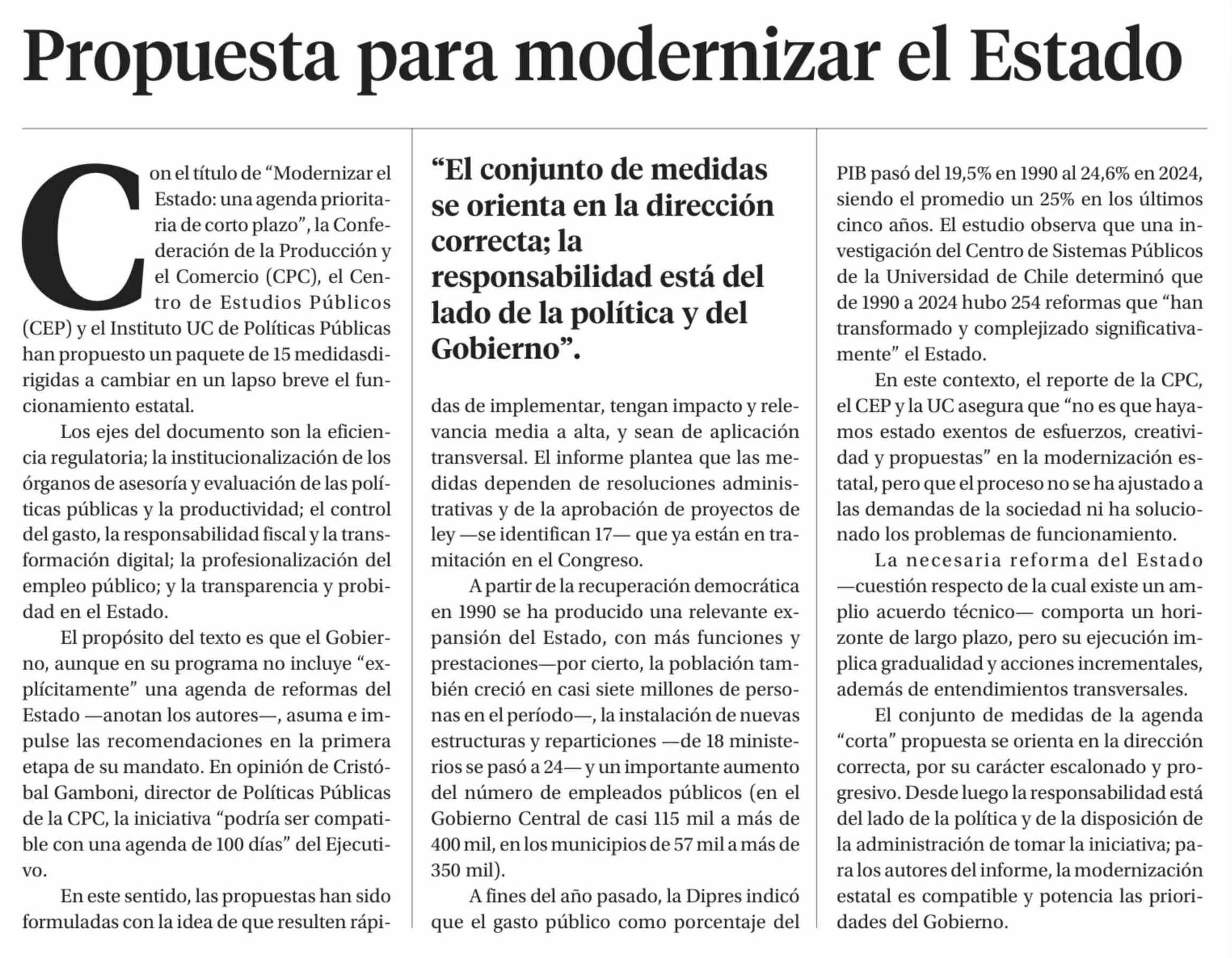 Editorial: Propuesta para modernizar el Estado