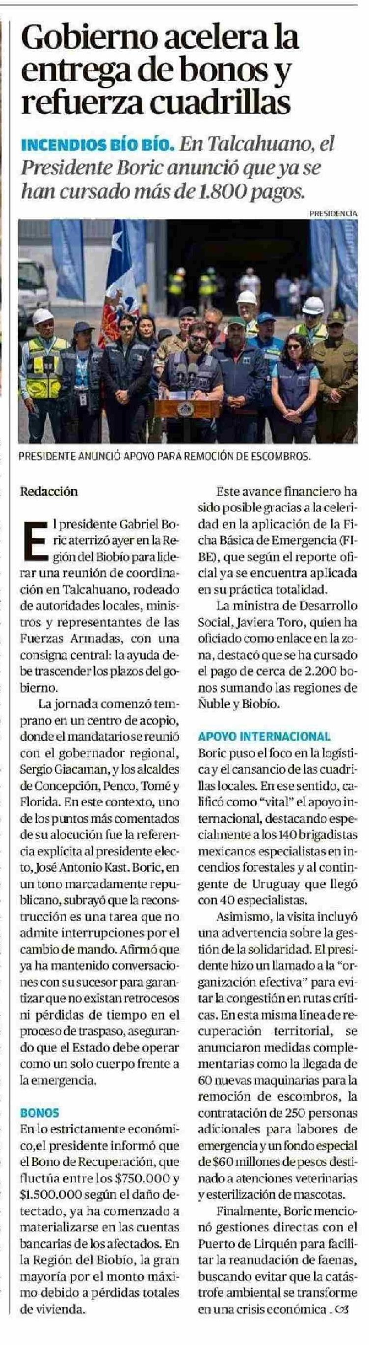 Gobierno acelera la entrega de bonos y refuerza cuadrillas