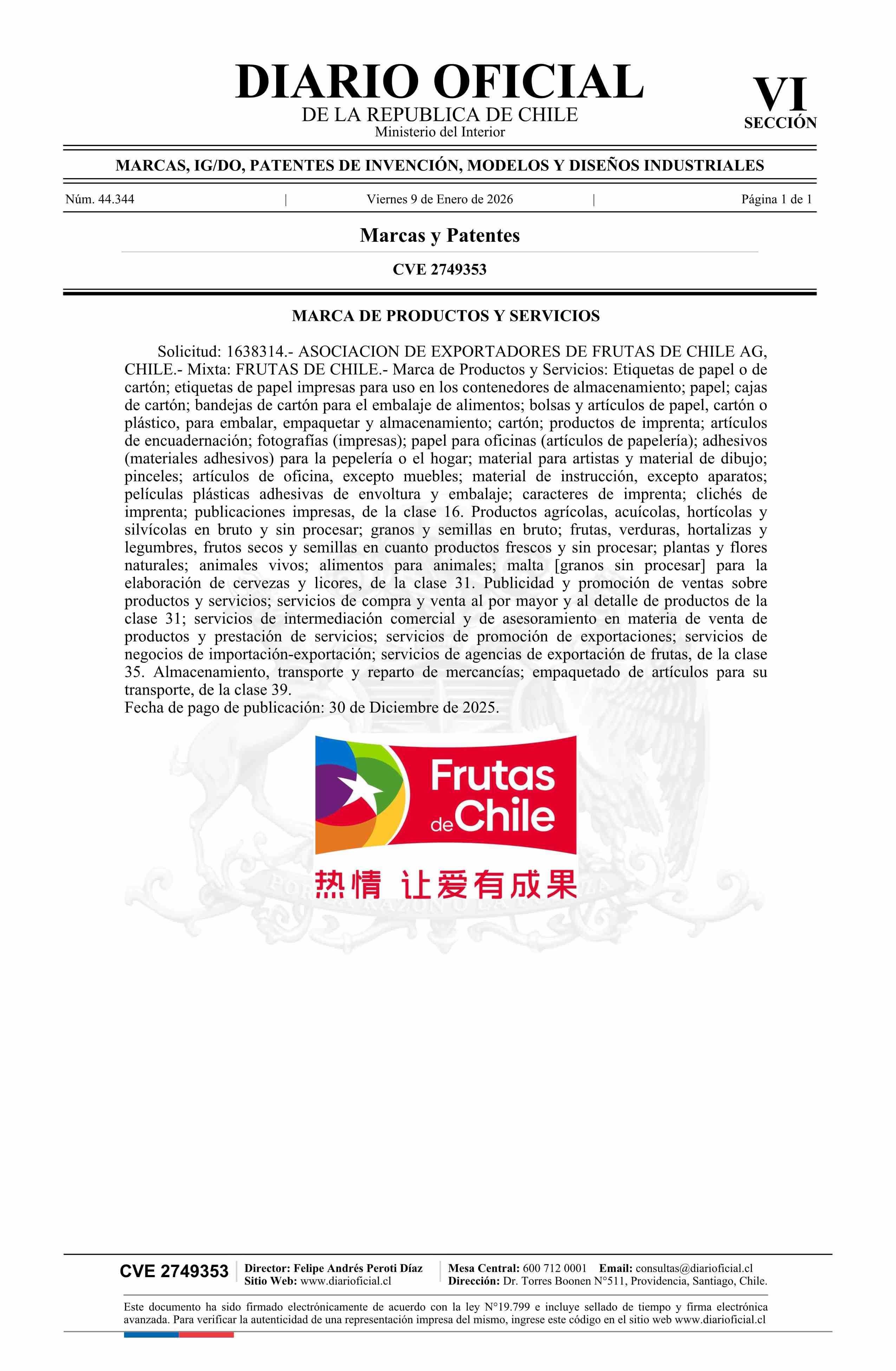 Solicitud número 1638314.- FRUTAS DE CHILE