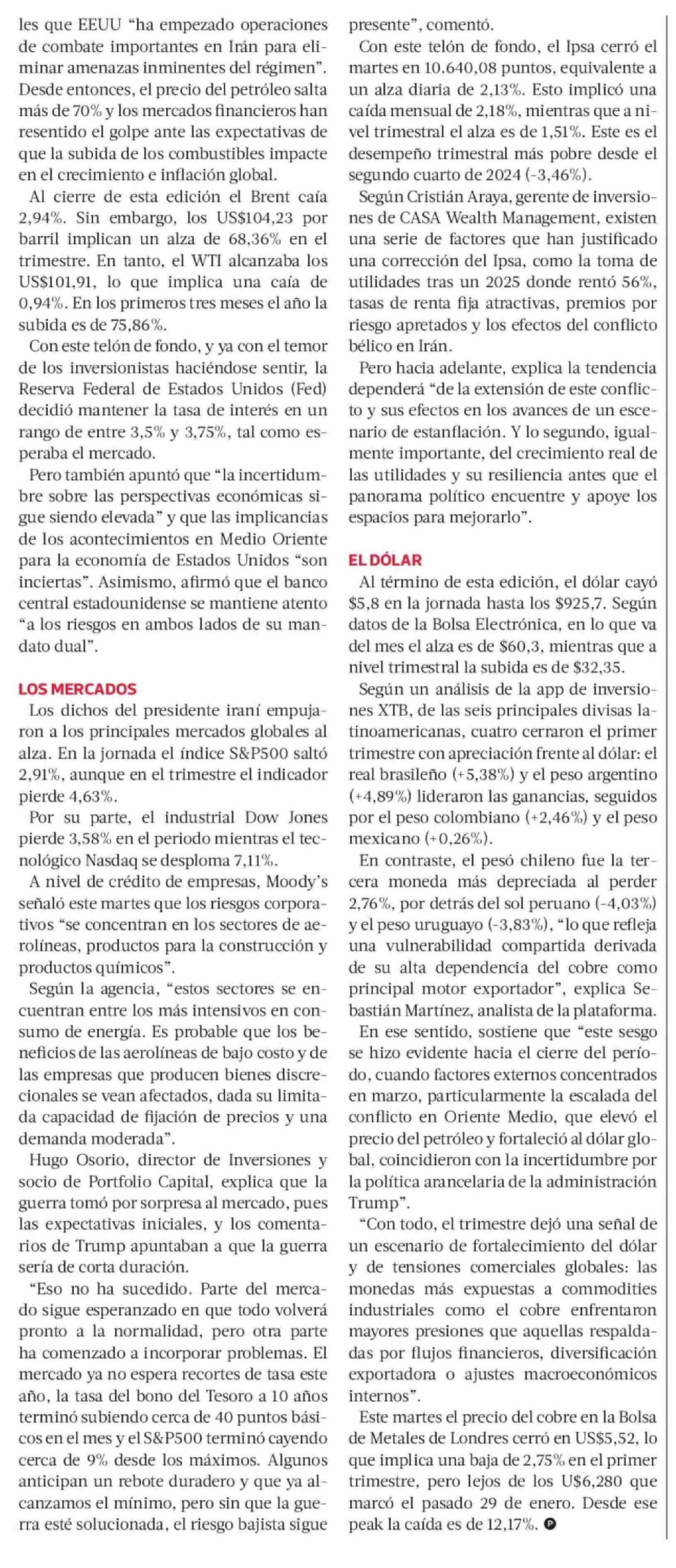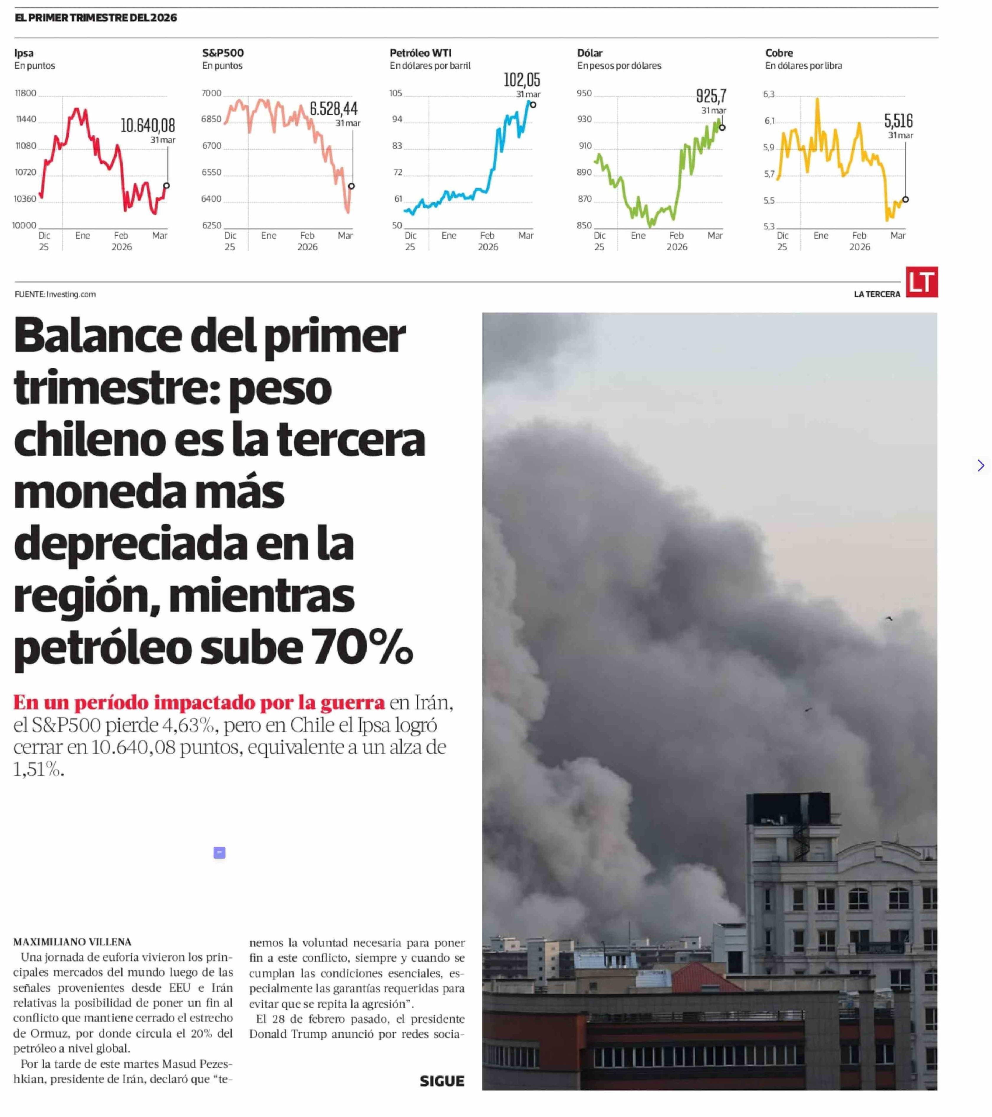 Balance del primer trimestre: peso chileno es la tercera moneda más depreciada en la región, mientras petróleo sube 70%