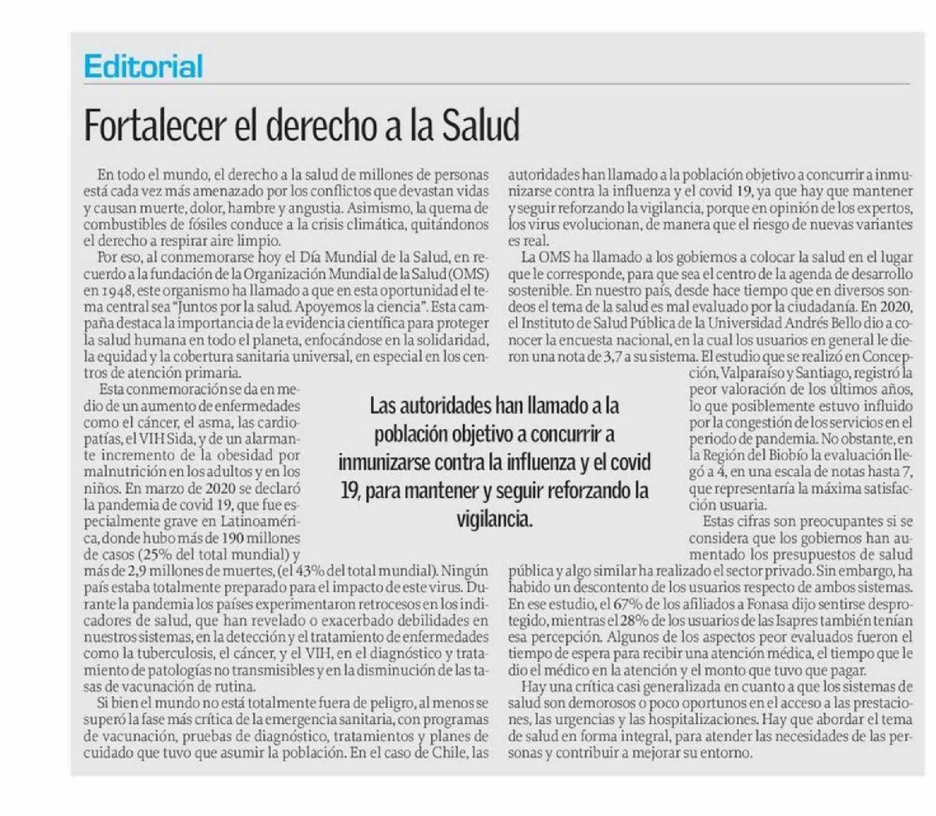 EDITORIAL: Fortalecer el derecho a la Salud