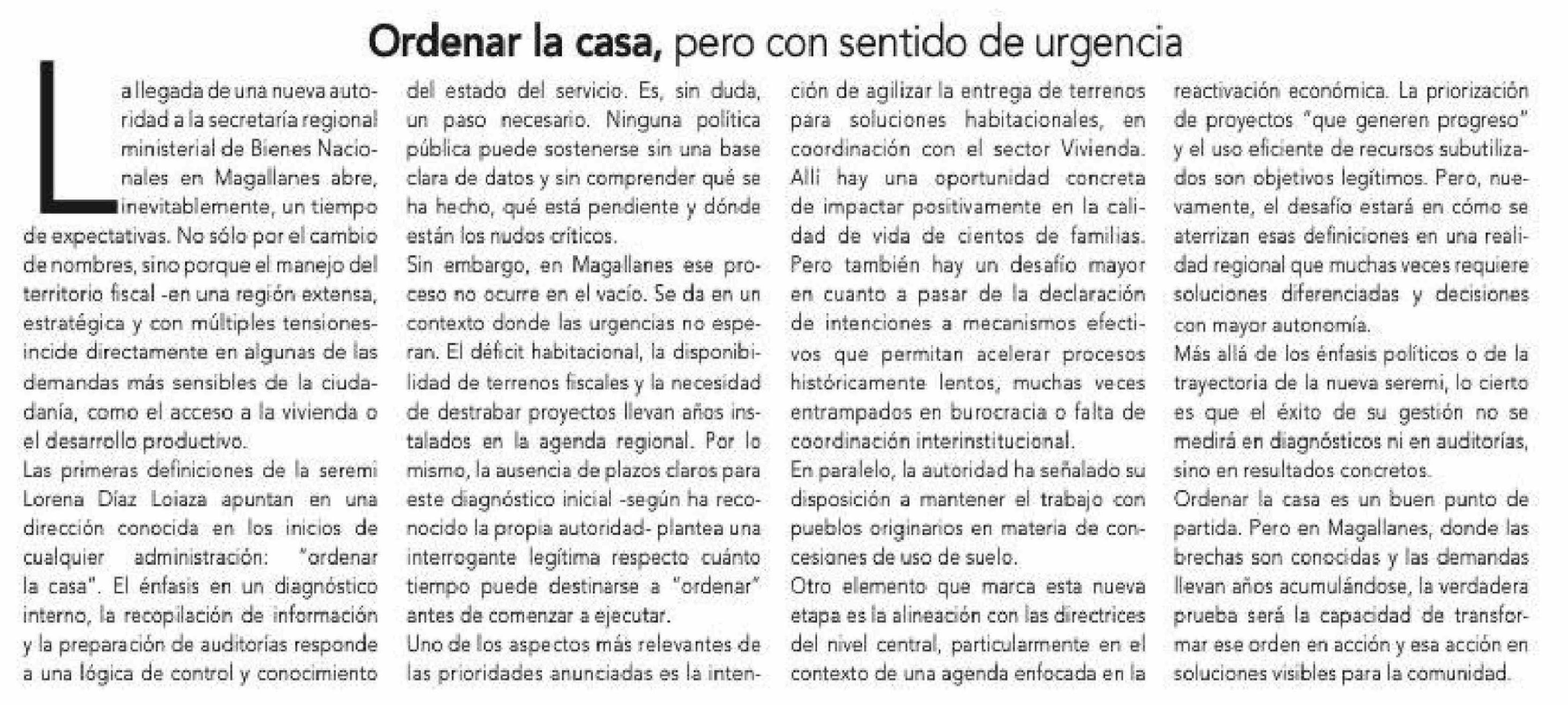 Editorial: Ordenar la casa, pero con sentido de urgencia