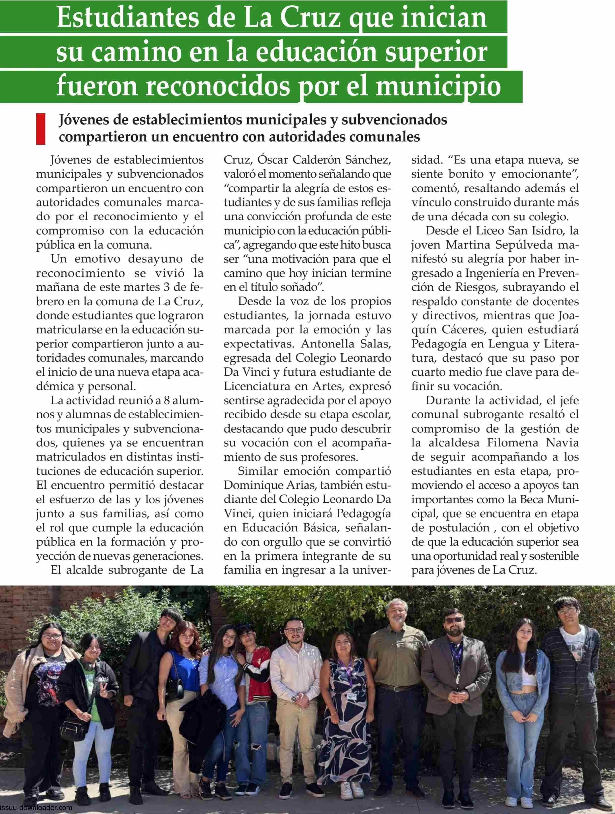 Estudiantes de La Cruz que inician su camino en la educación superior fueron reconocidos por el municipio