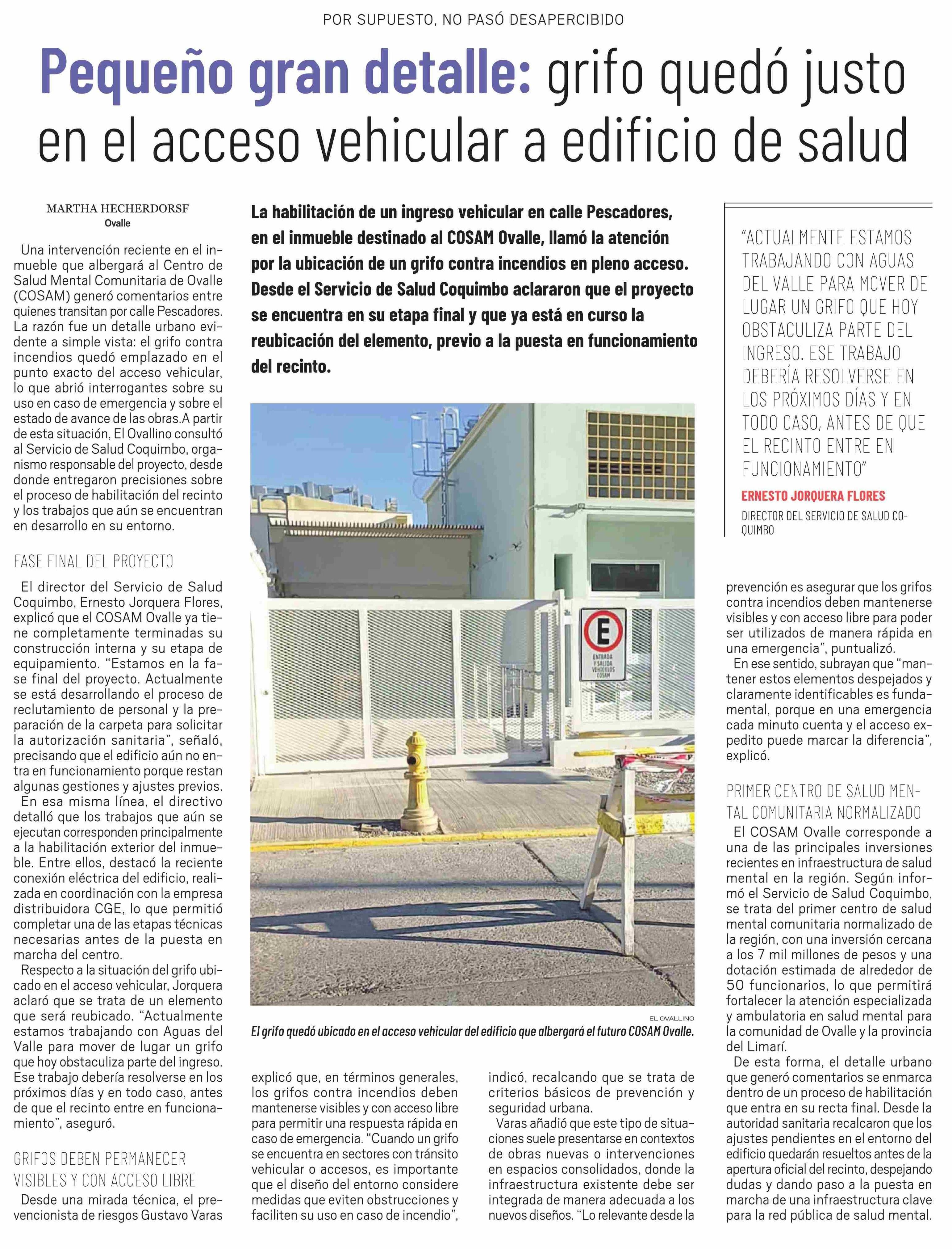 Pequeño gran detalle: grifo quedó justo en el acceso vehicular a edificio de salud