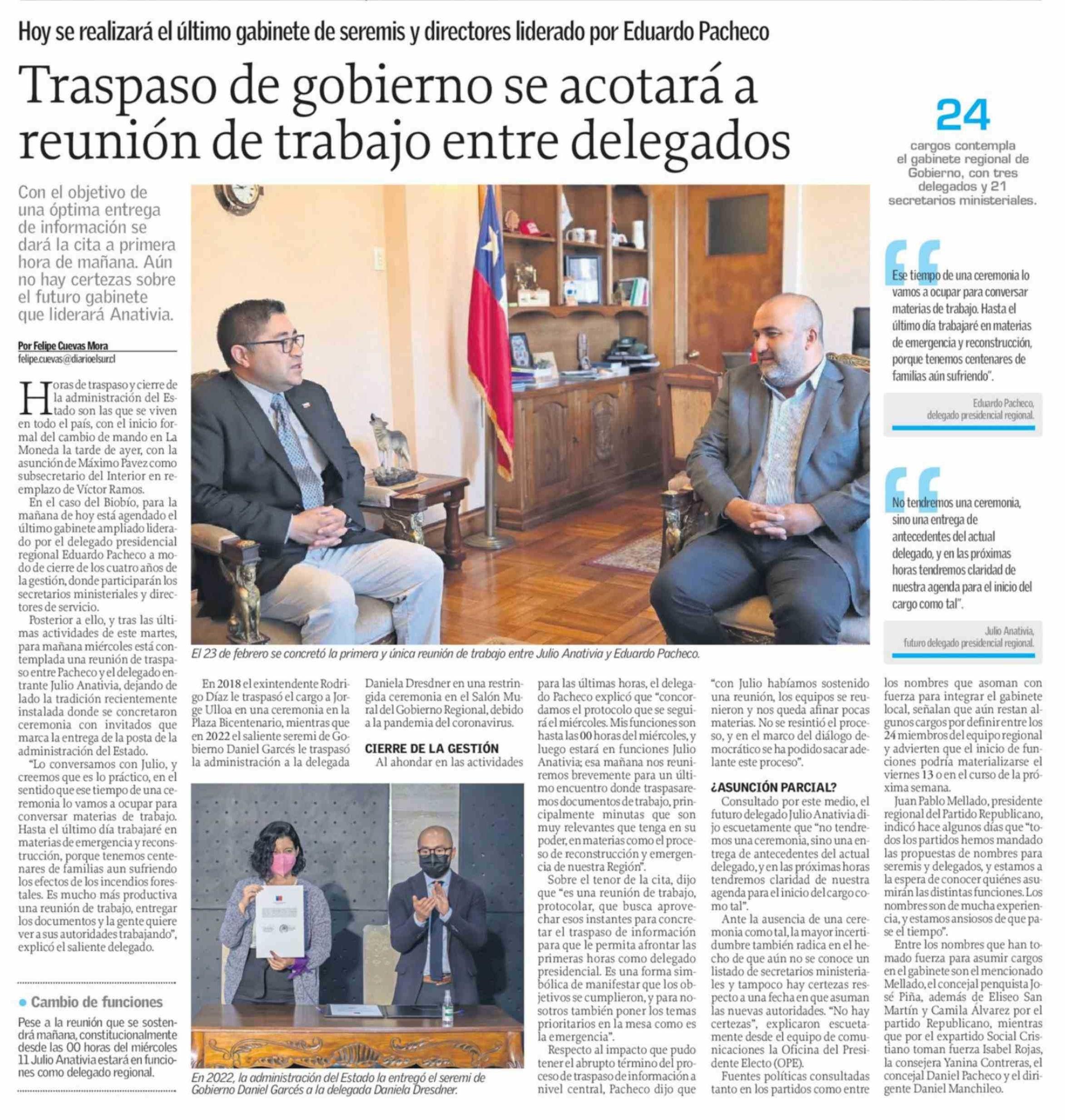 Traspaso de gobierno se acotará a reunión de trabajo entre delegados