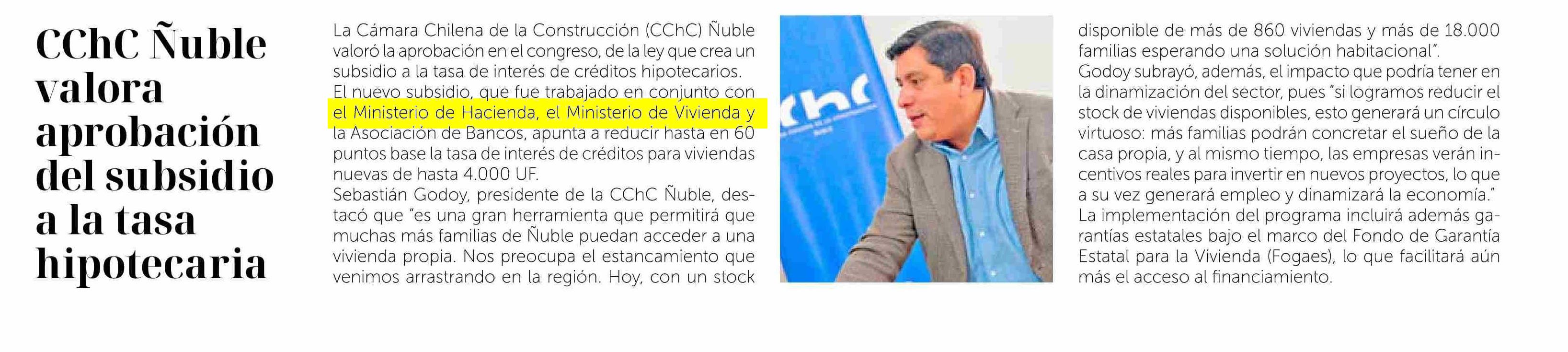 CChC Ñuble valora aprobación del subsidio a la tasa hipotecaria