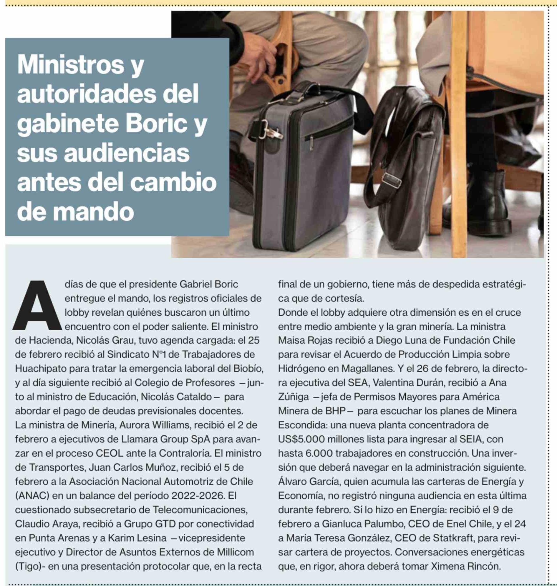 Ministros y autoridades del gabinete Boric y sus audiencias antes del cambio de mando