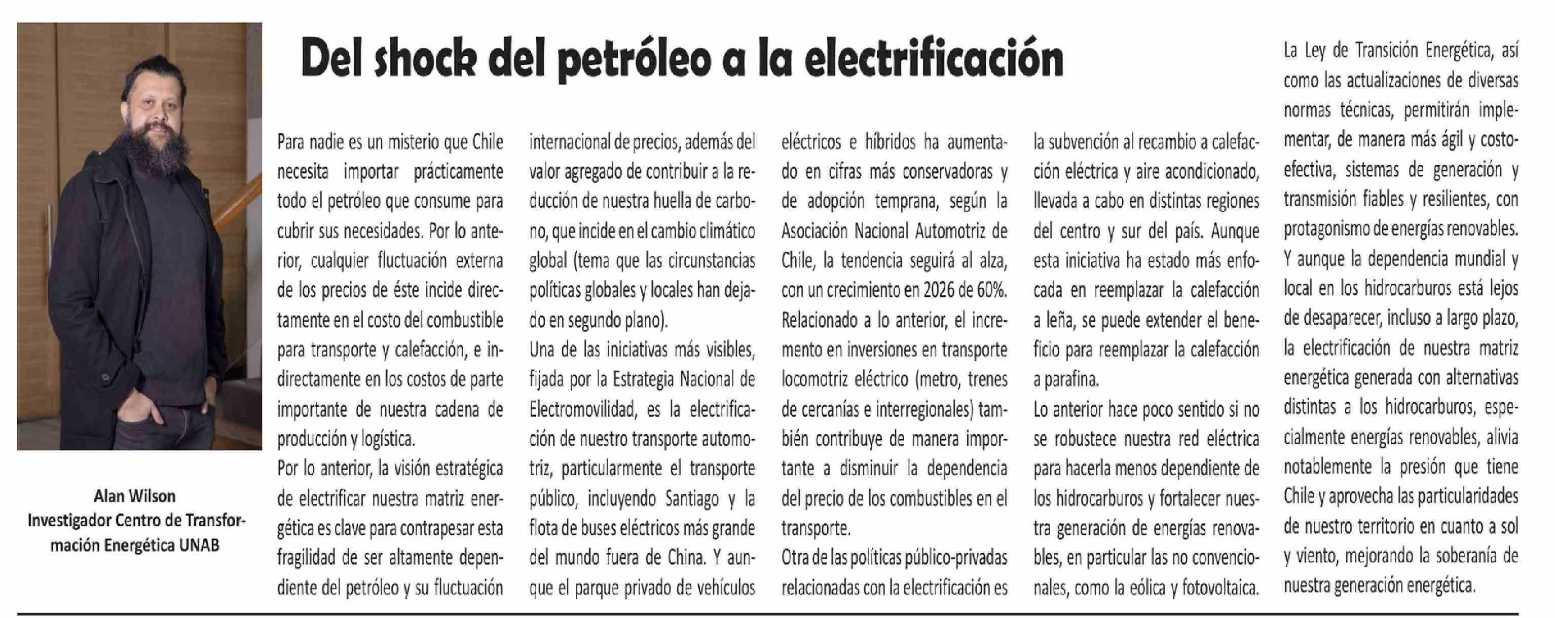 Columnas de Opinión: Del shock del petróleo a la electrificación