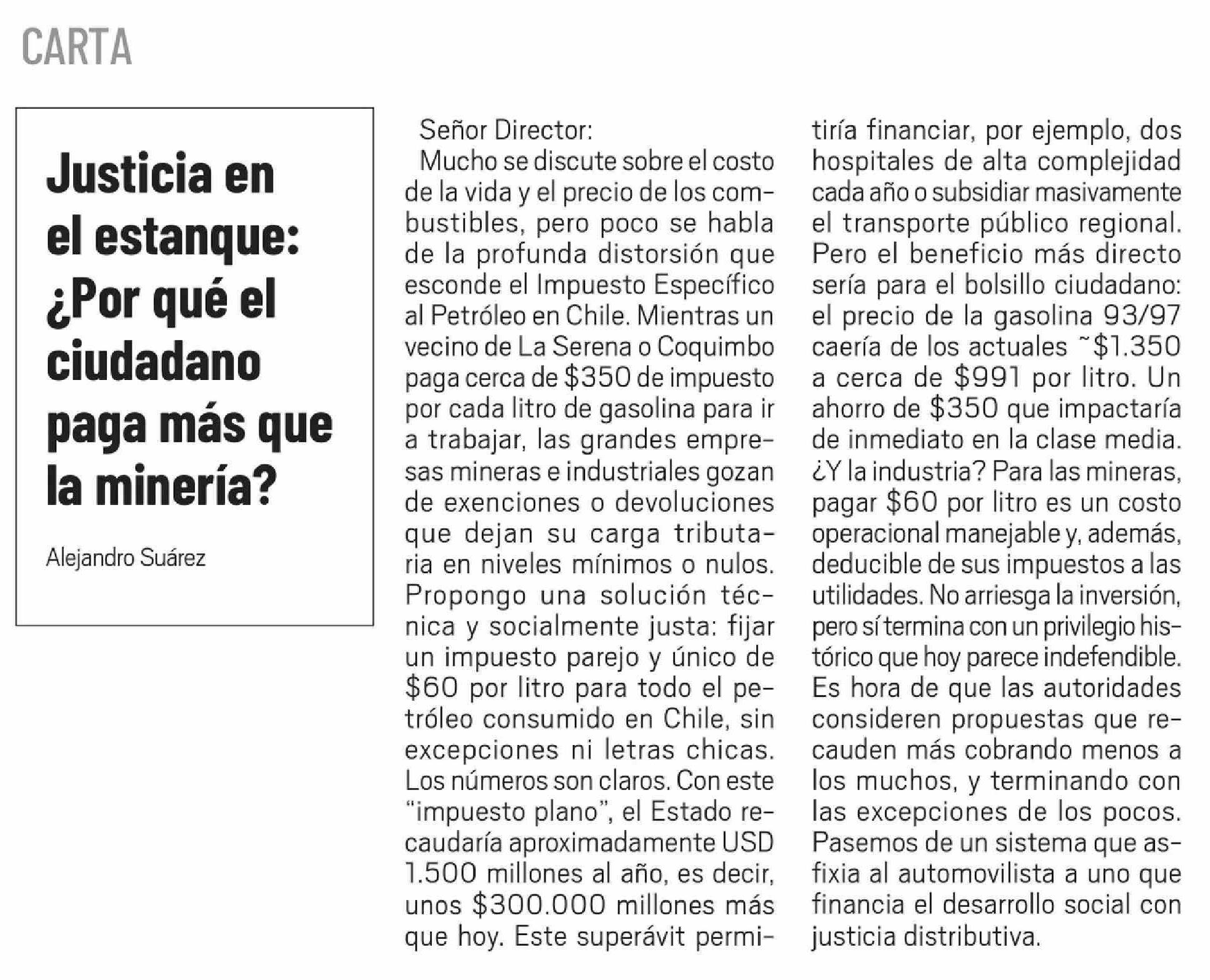 Columnas de Opinión: Justicia en el estanque: ¿Por qué el ciudadano paga más que la minería?
