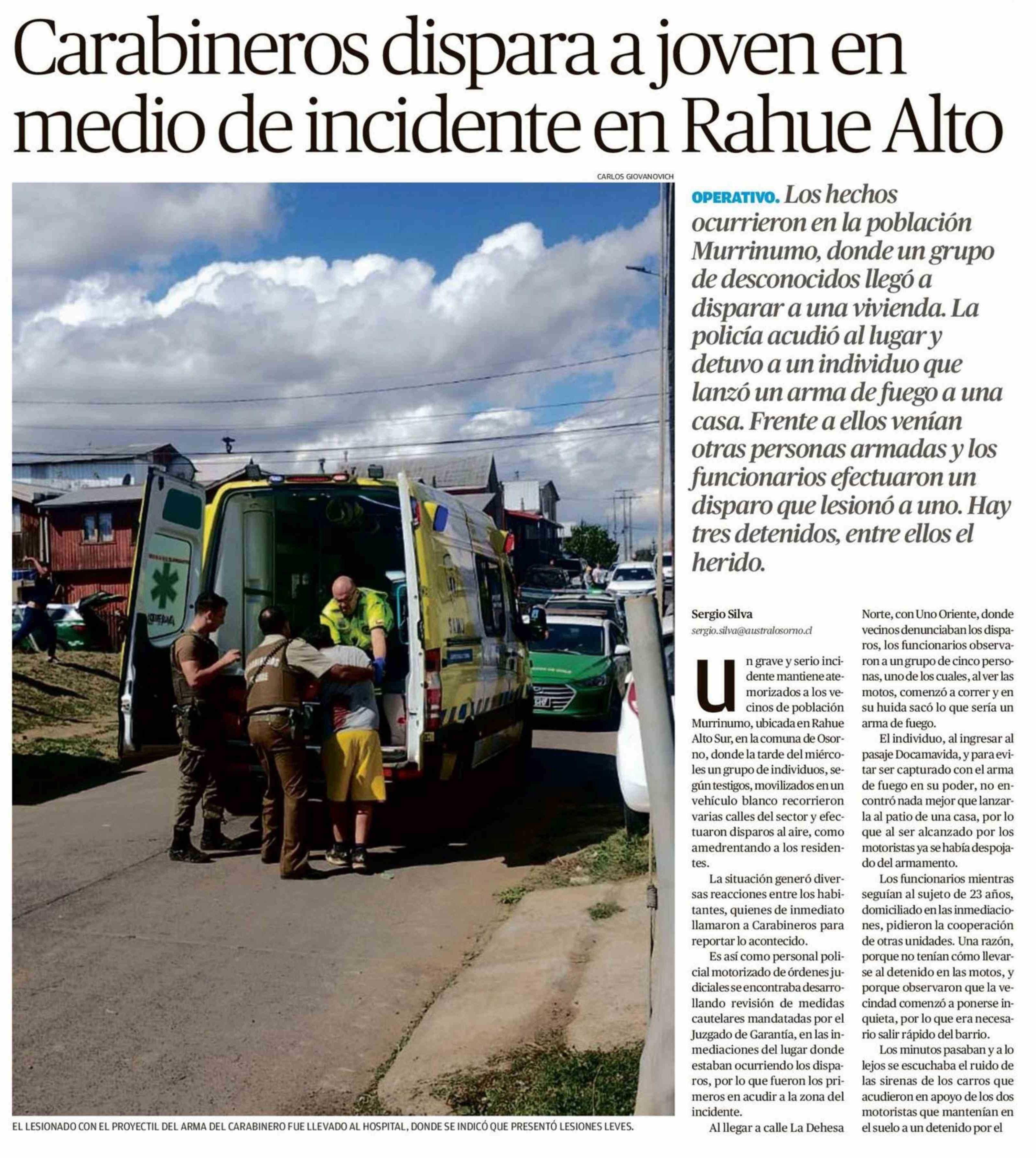 Carabineros dispara a joven en medio de incidente en Rahue Alto