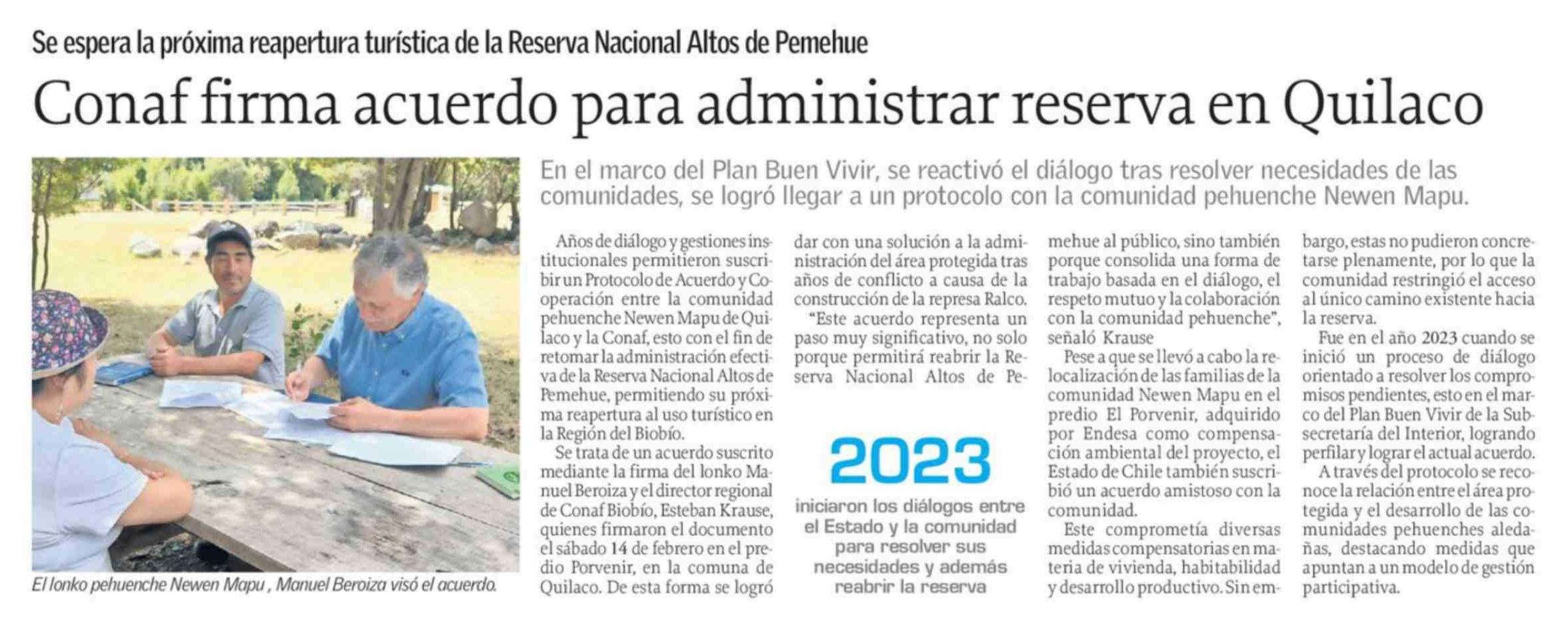 Conaf firma acuerdo para administrar reserva en Quilaco
