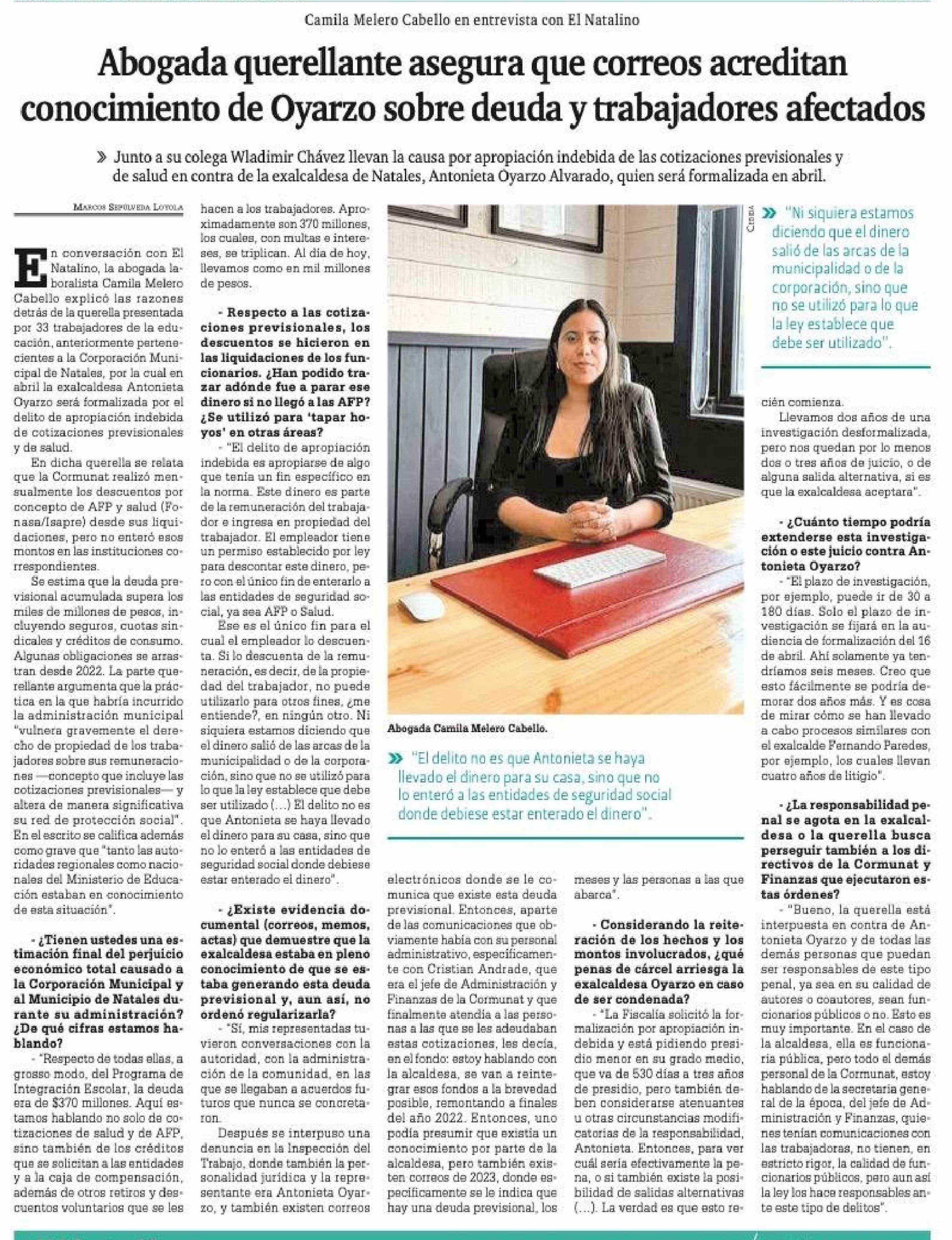 Abogada querellante asegura que correos acreditan conocimiento de Oyarzo sobre deuda y trabajadores afectados